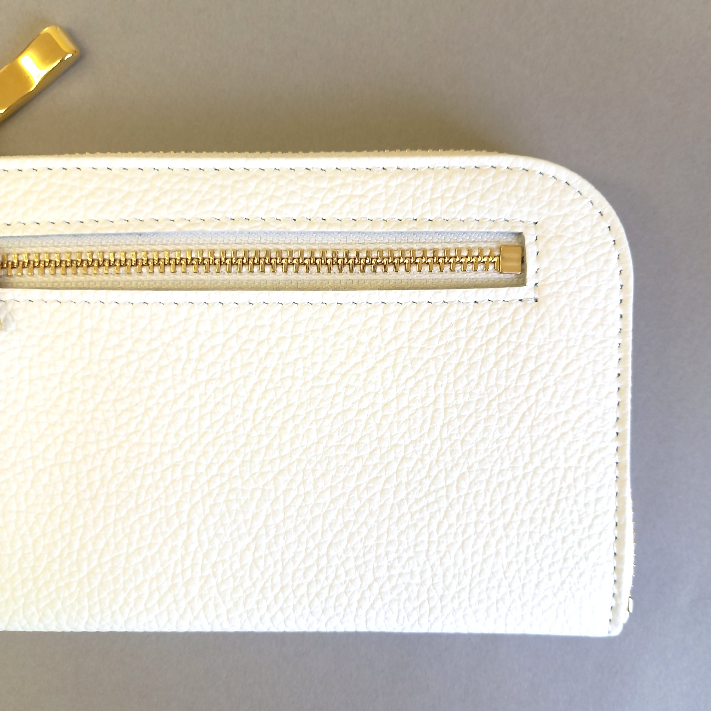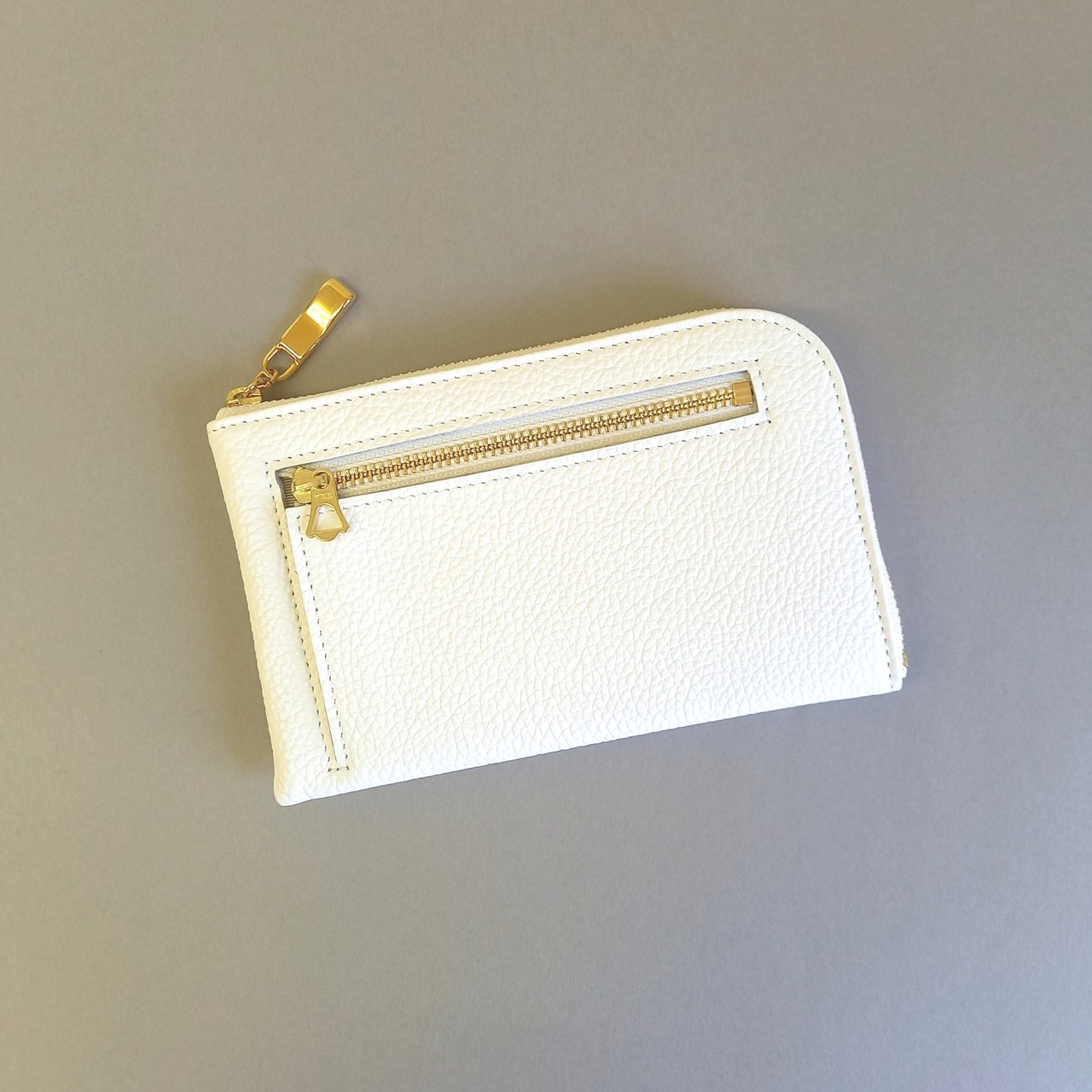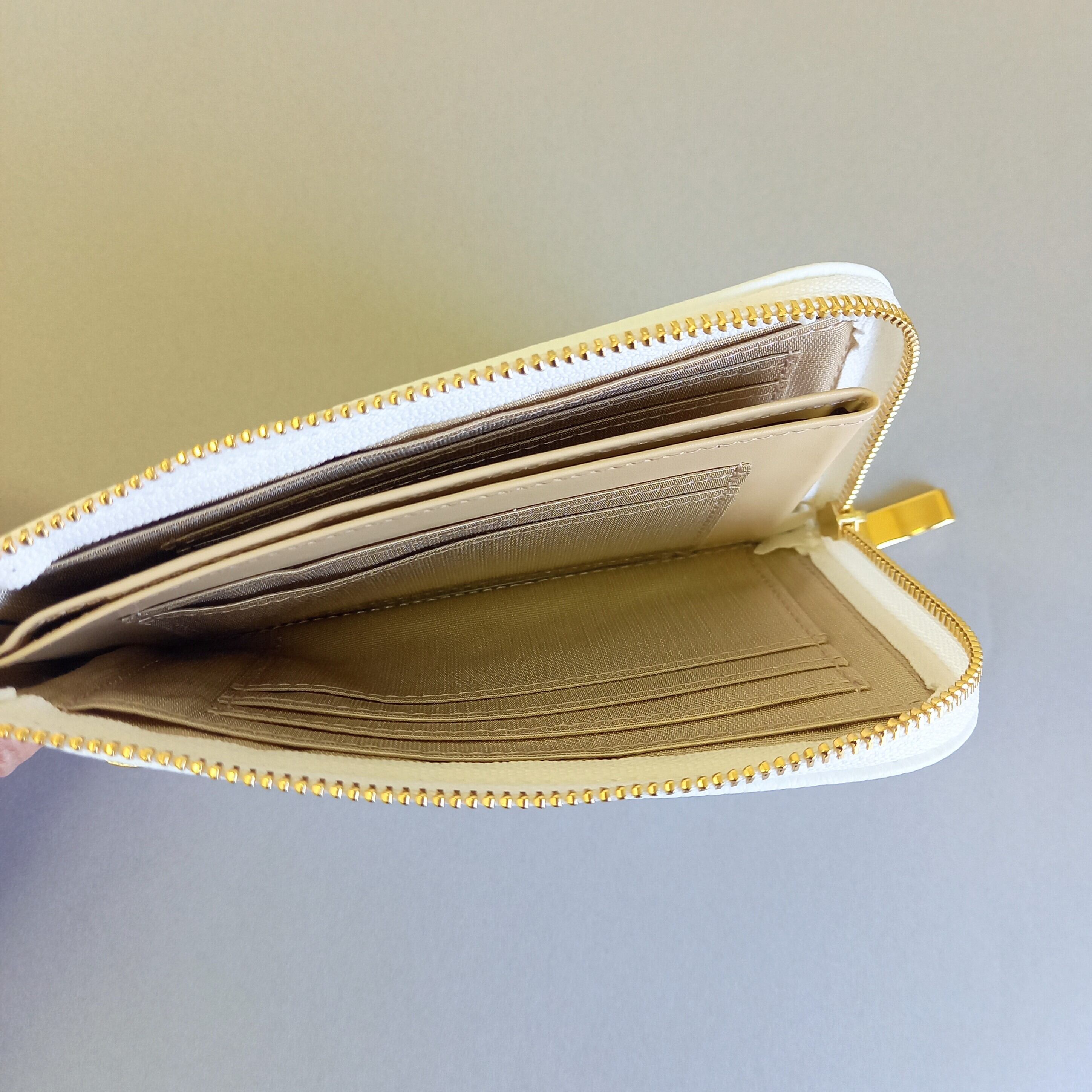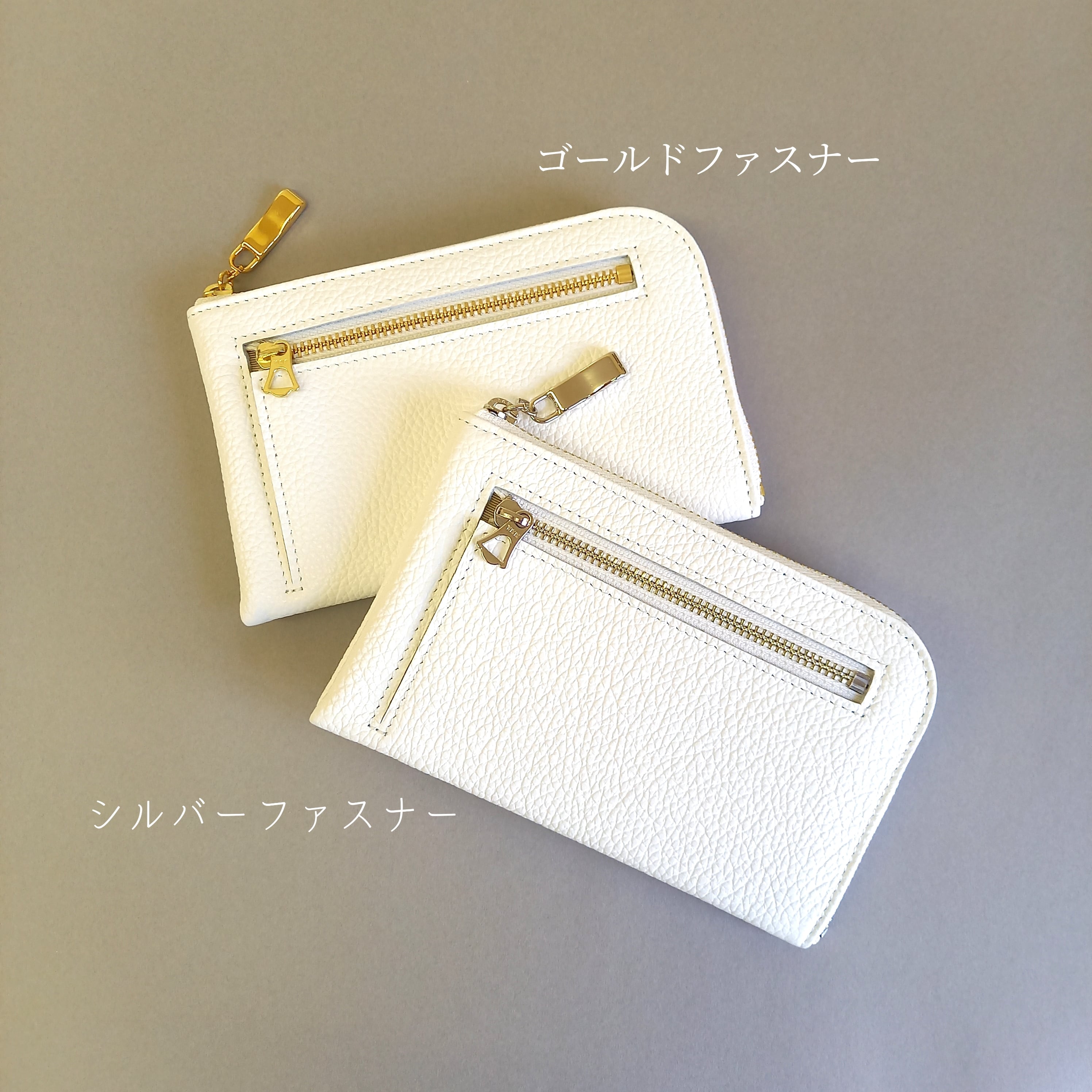 スリムで軽いミニ財布(ホワイト) 10枚カードポケット◇高級イタリアンレザー◇ファスナー選べる【かわつむ】L字ファスナーコンパクト財布