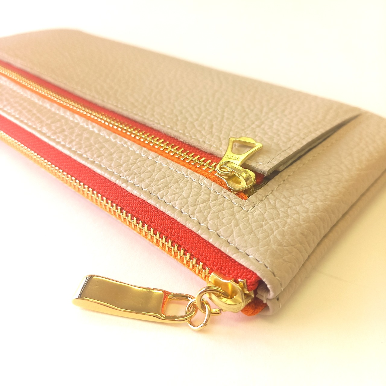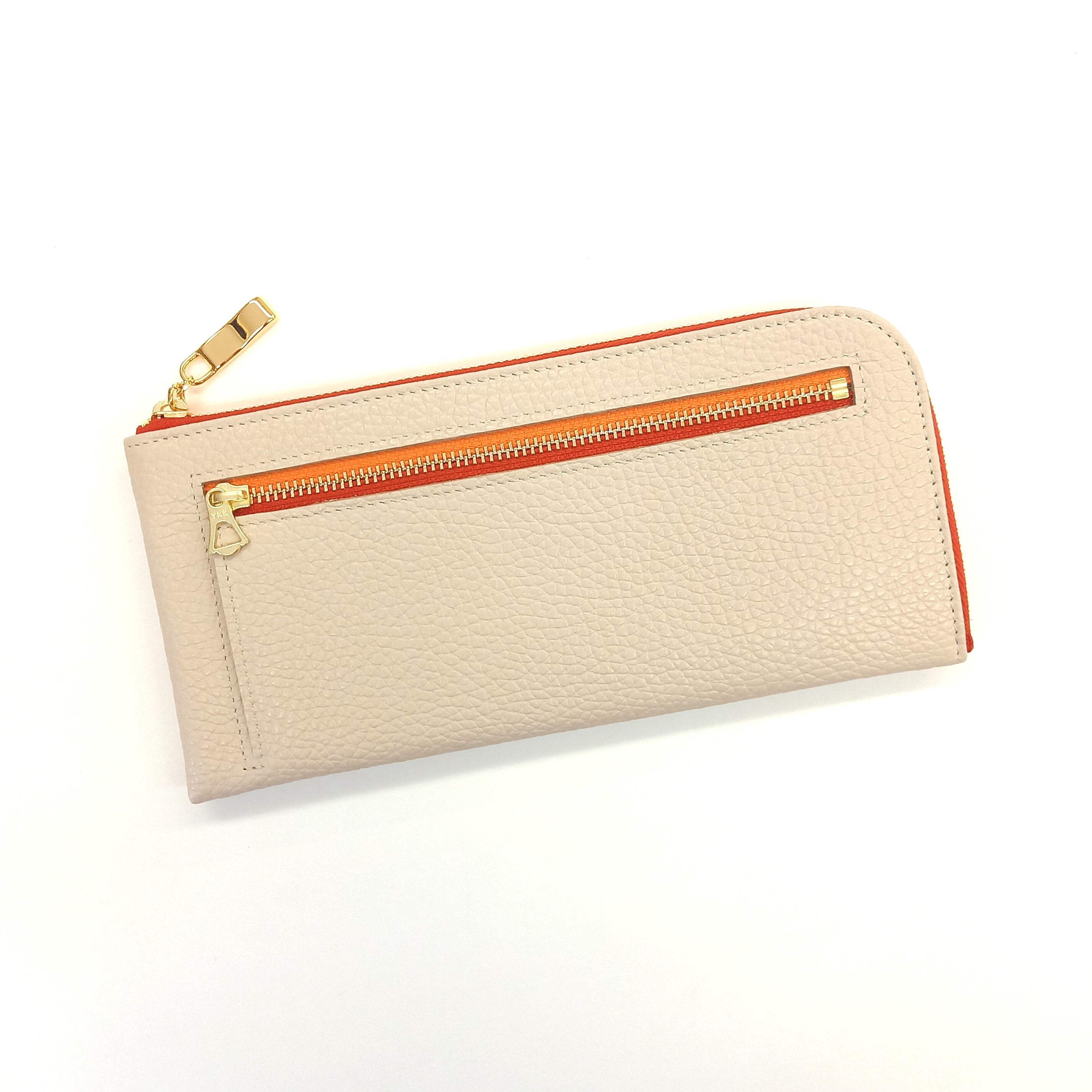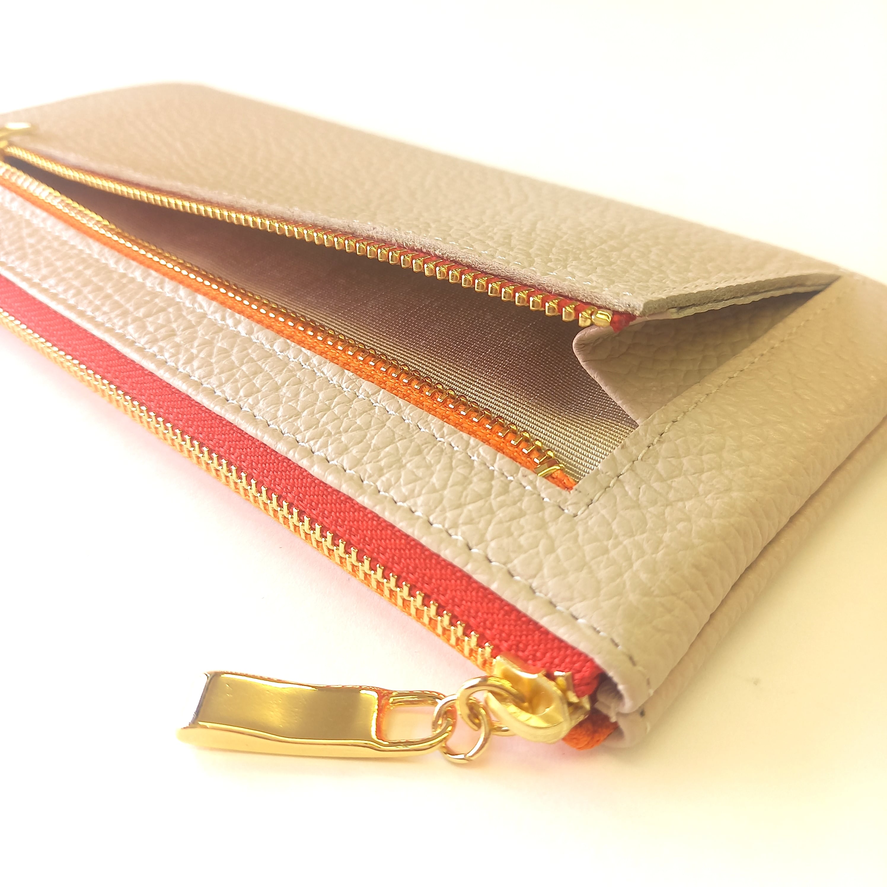 イエベ春さんに似合うお財布2(ライトベージュ)薄くて軽くて大容量!コンパクト長財布◇14枚カードポケット 牛革シュリンク◇高級イタリアンレザー◇パーソナルカラー スリム