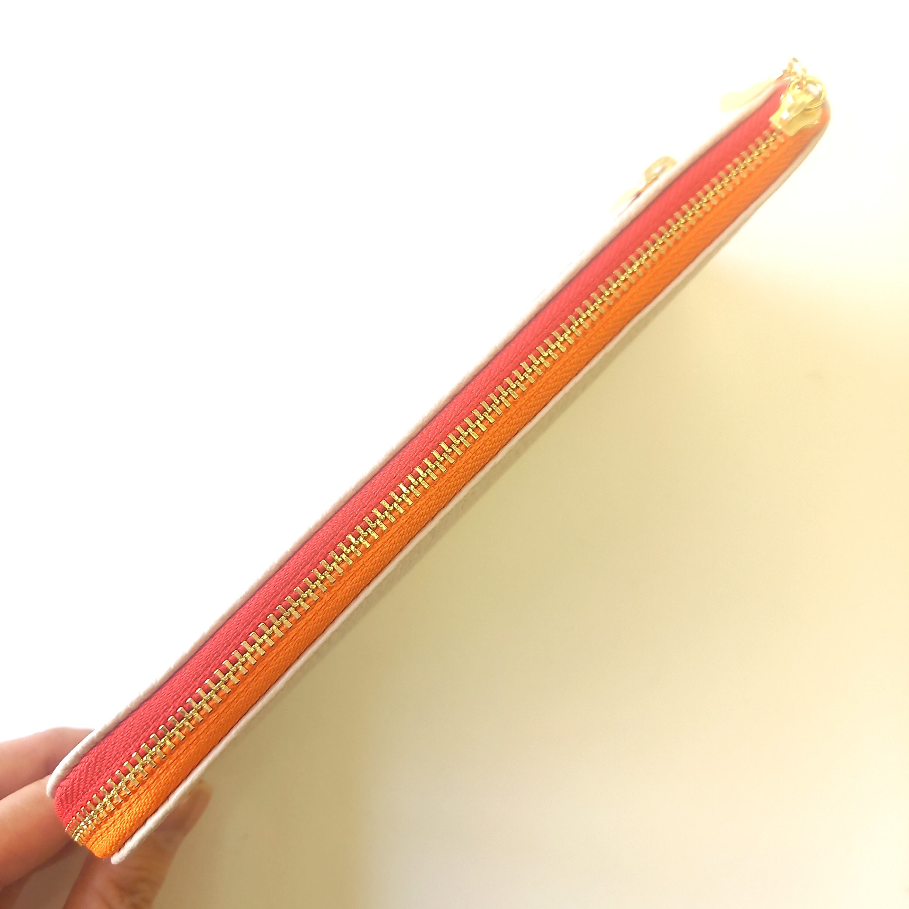 ファスナーのカラーは、レッド×オレンジでかわいらしく元気が出るような印象にしました。