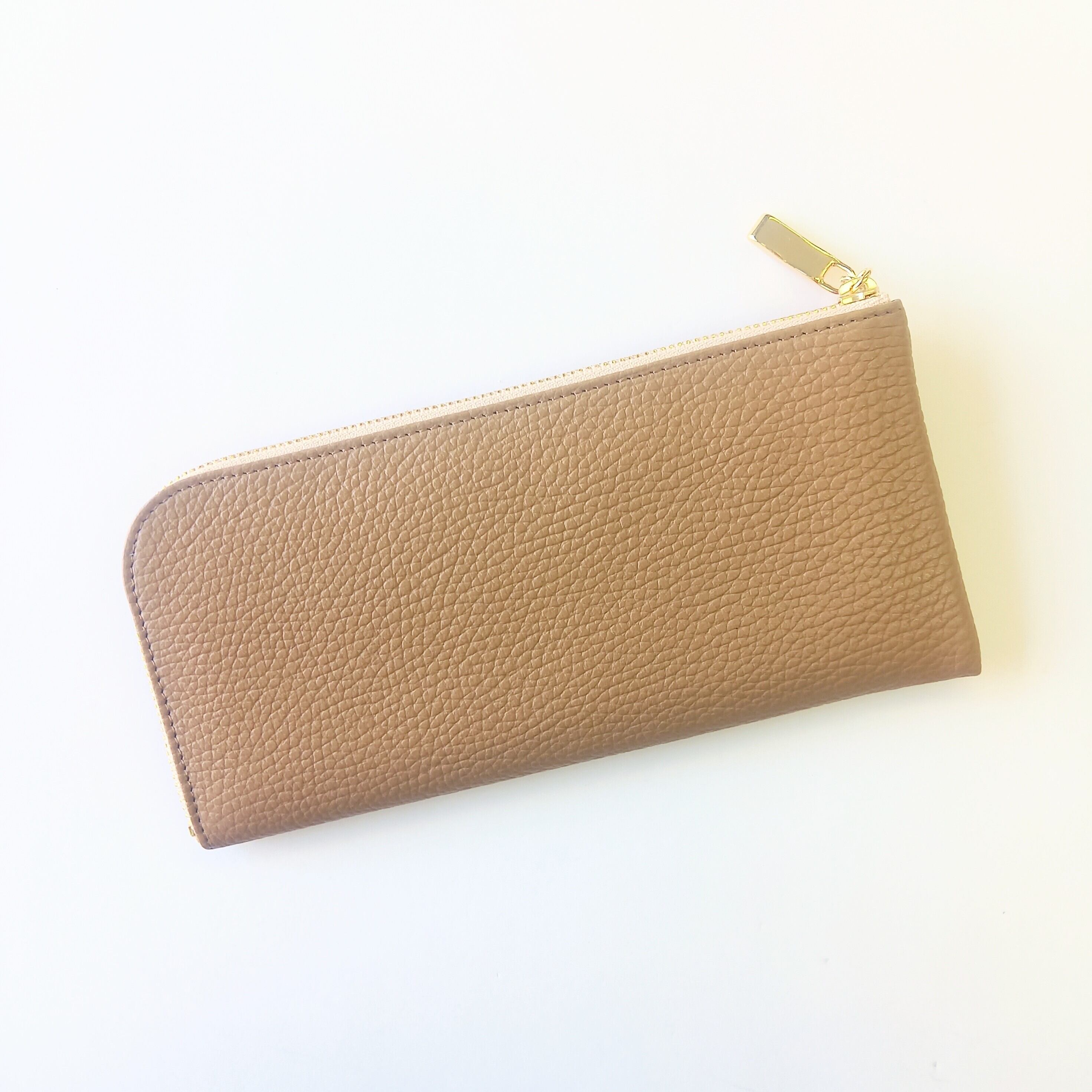 イエベ秋さんに似合うお財布2(カフェベージュ)薄くて軽くて大容量!コンパクト長財布◇14枚カードポケット 牛革シュリンク◇高級イタリアンレザー◇パーソナルカラー スリム