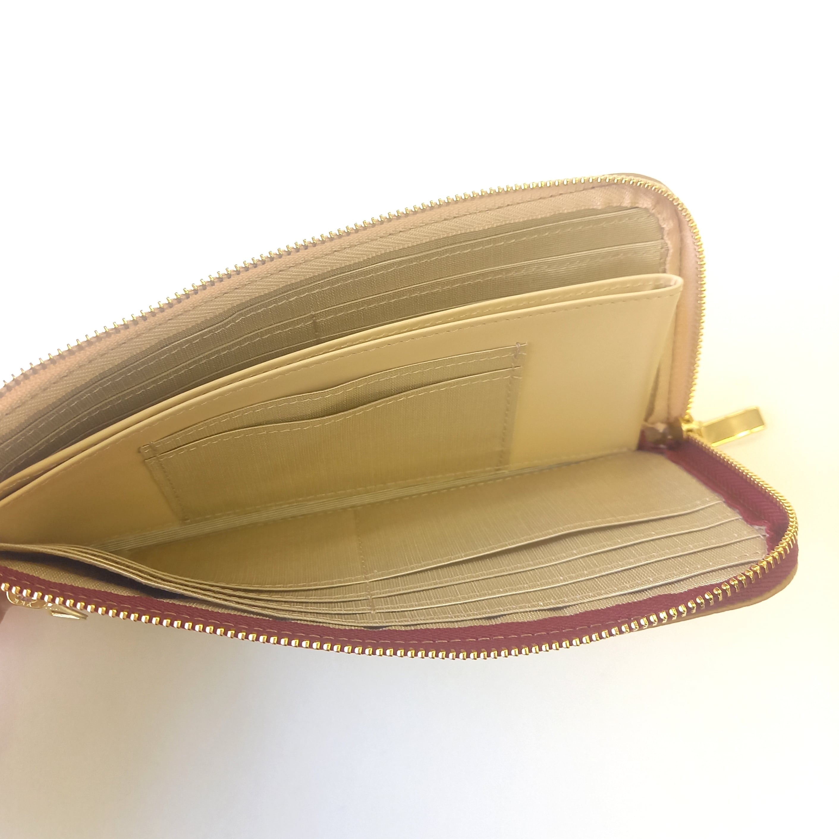 中央の小銭入れのスペースは、ベージュの牛革になります。