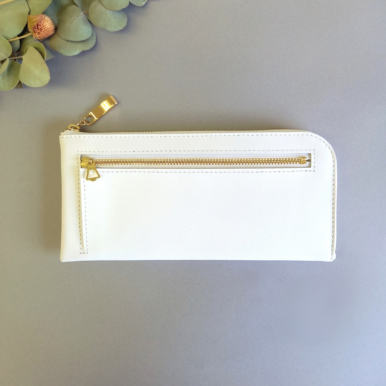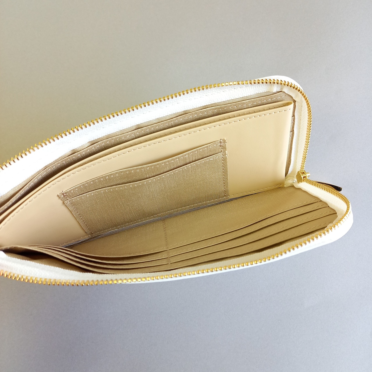 スリムで軽く大容量な長財布(スノーホワイト)カード入れは14か所!高級スムースレザー◇牛革◇L字ファスナー財布【かわつむ】