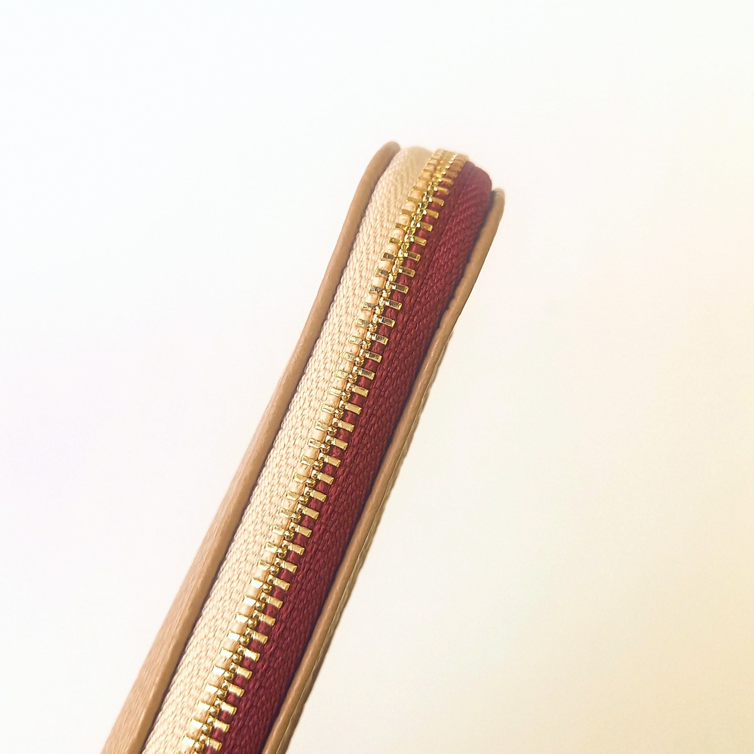 ファスナーのカラーは、ベージュ×ダークブラウンのコンビになります。