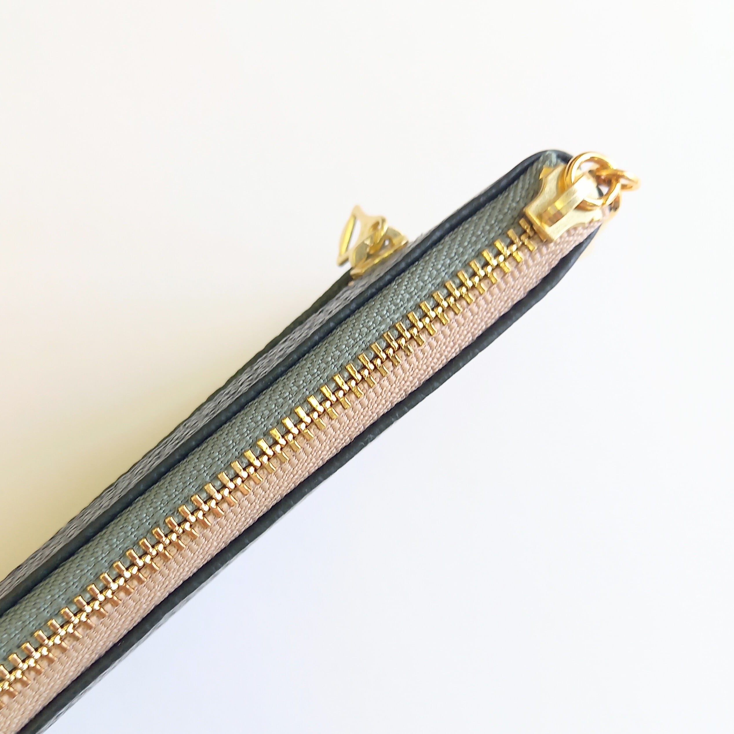 ファスナーのカラーは、サンドベージュ×スモークオリーブのコンビになります。