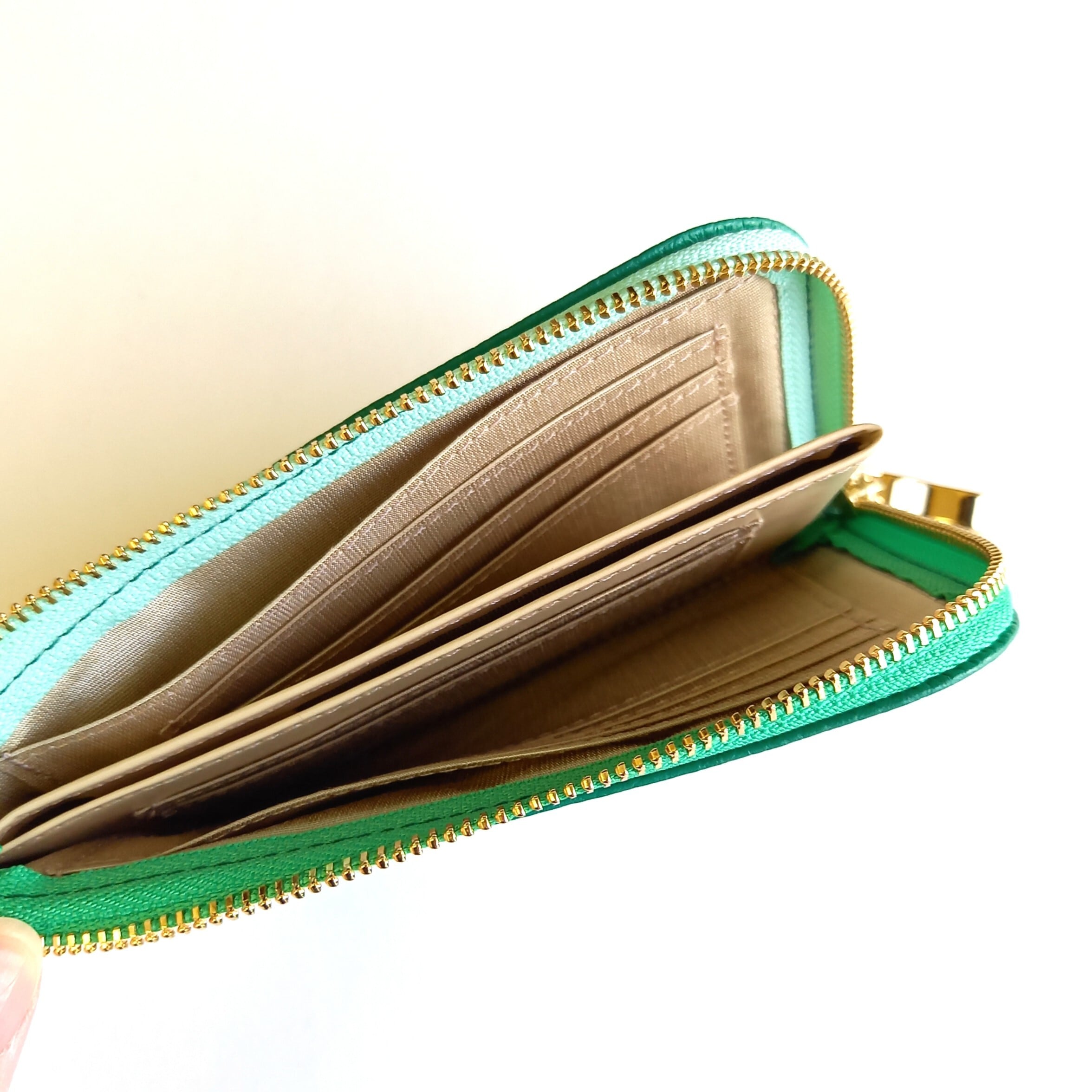 小銭は内側中央のスペースに入れてお使いいただくと、メインファスナーを開けてすぐにお札も小銭も同時に見えるのでお会計のときにスムーズです。