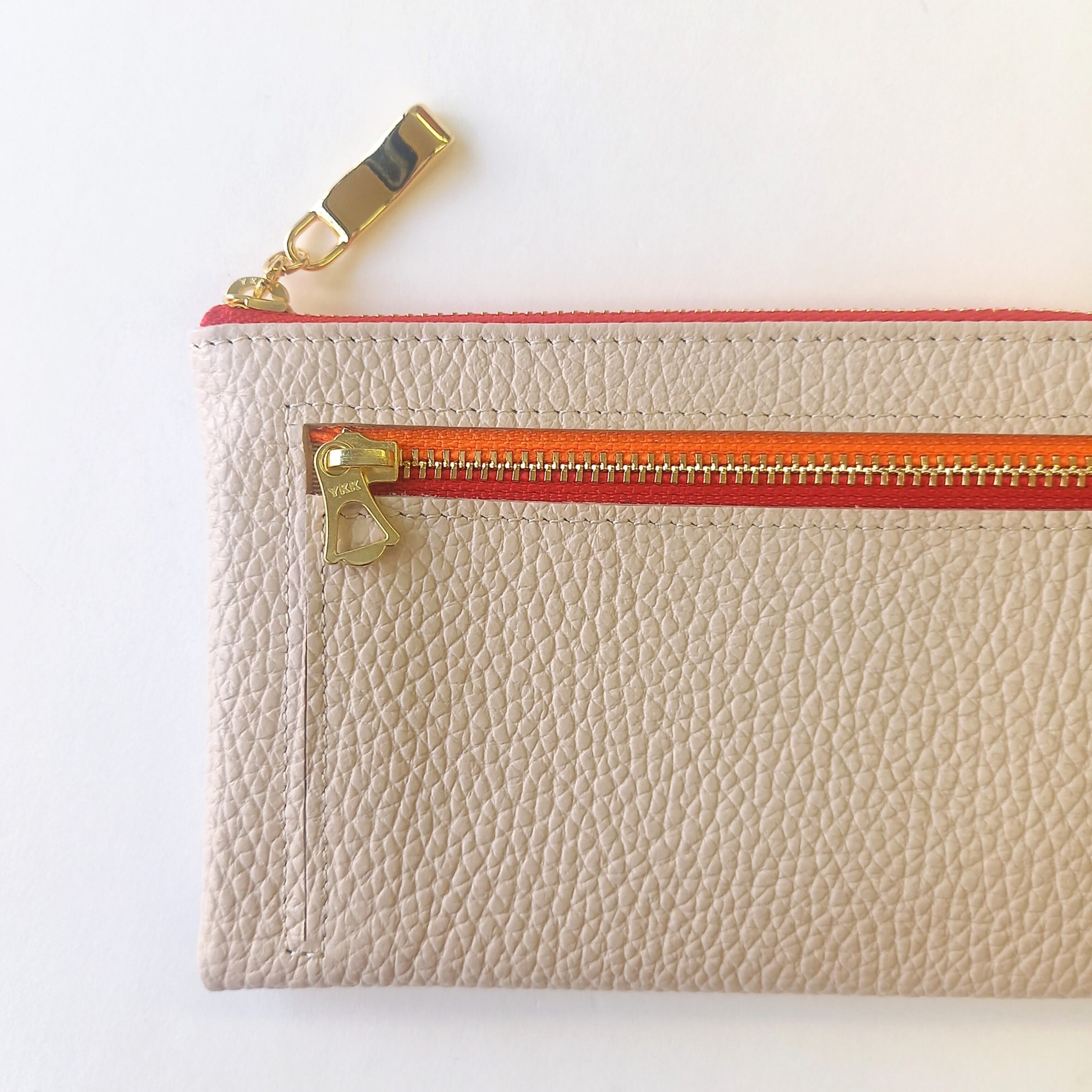 ファスナーのカラーは、白に近いライトイエロー×オレンジのコンビで鮮やかに。