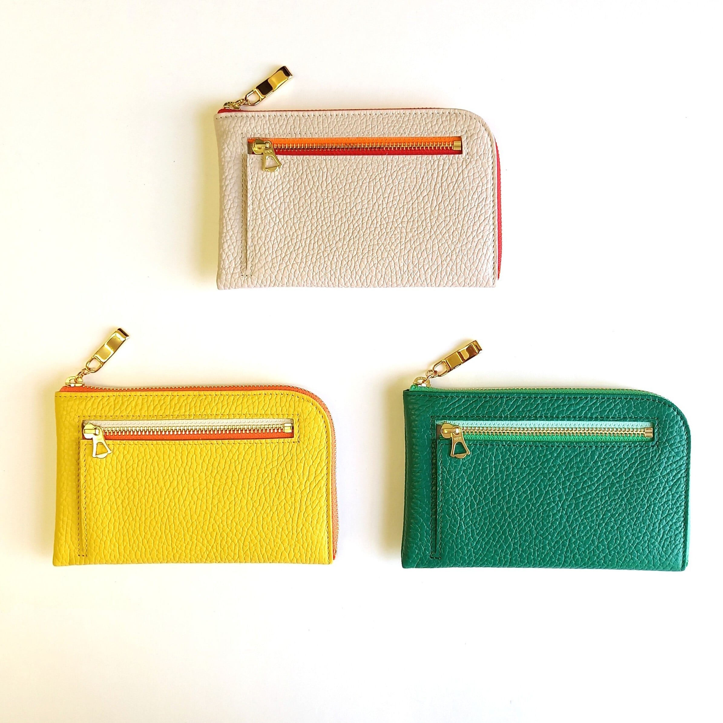 薄マチで軽くコンパクトなサイズの、L字ファスナーミニ財布です。