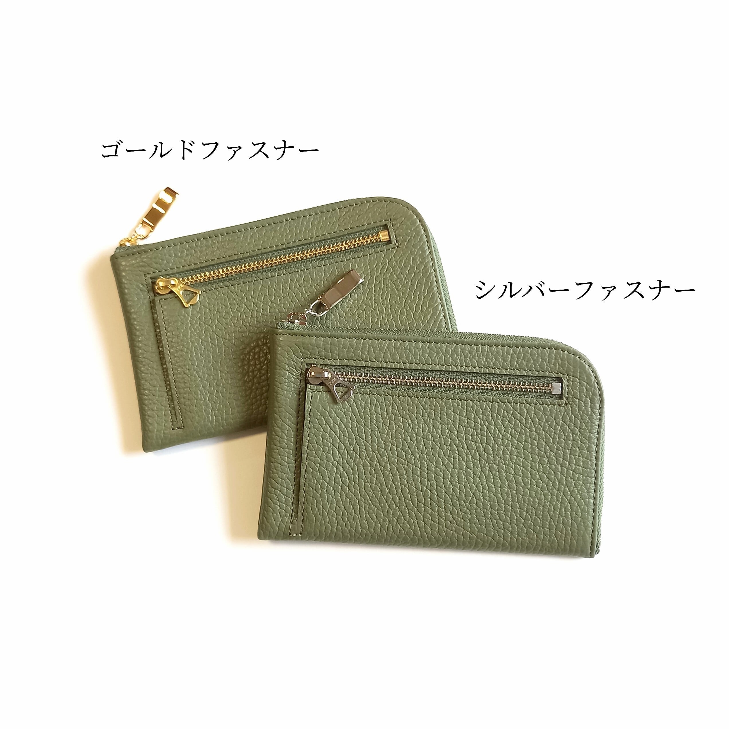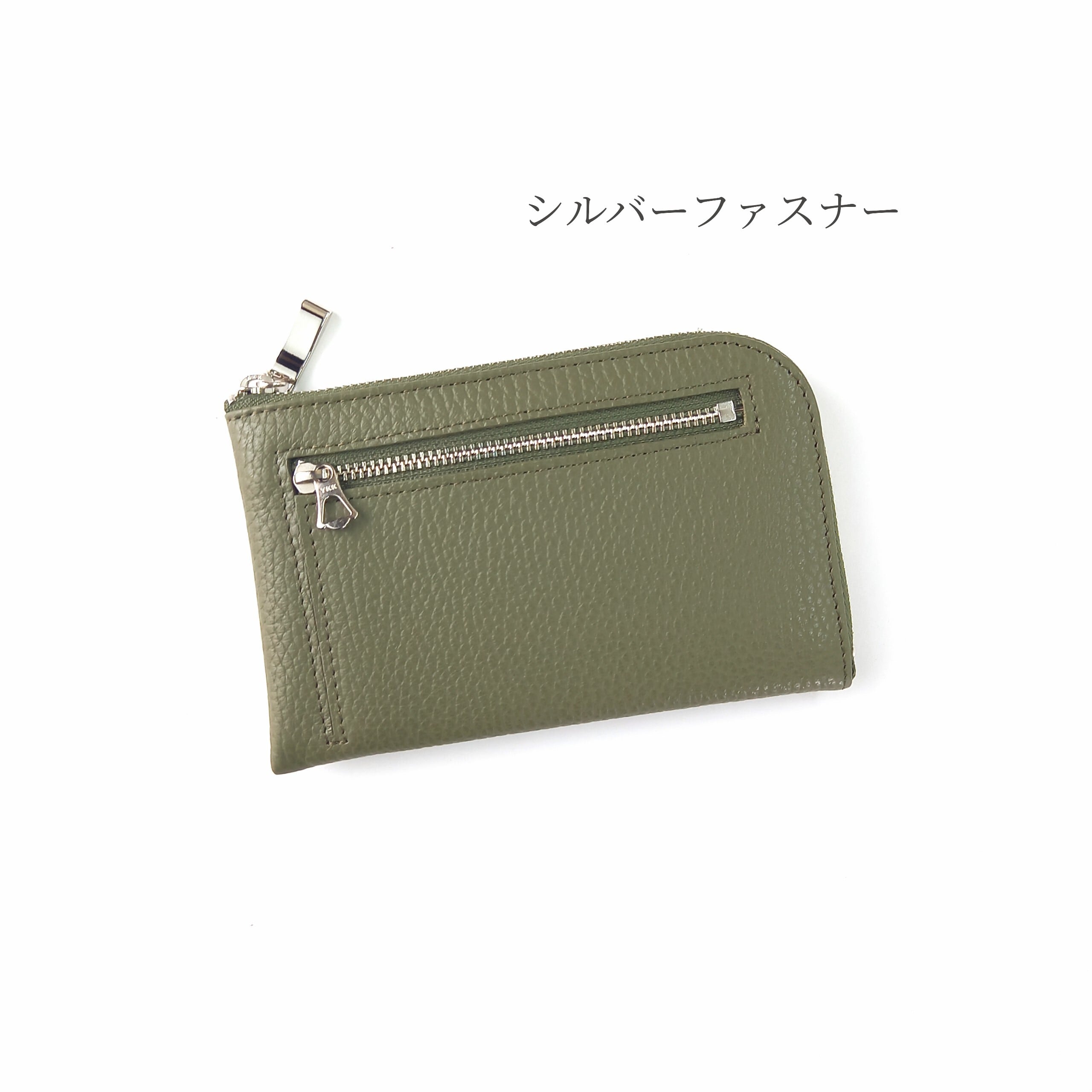 スリムで軽いミニ財布(オリーブグリーン)高級イタリアンレザー◇カード入れは10か所!牛革シュリンク型押し◇コンパクトL字ファスナー財布