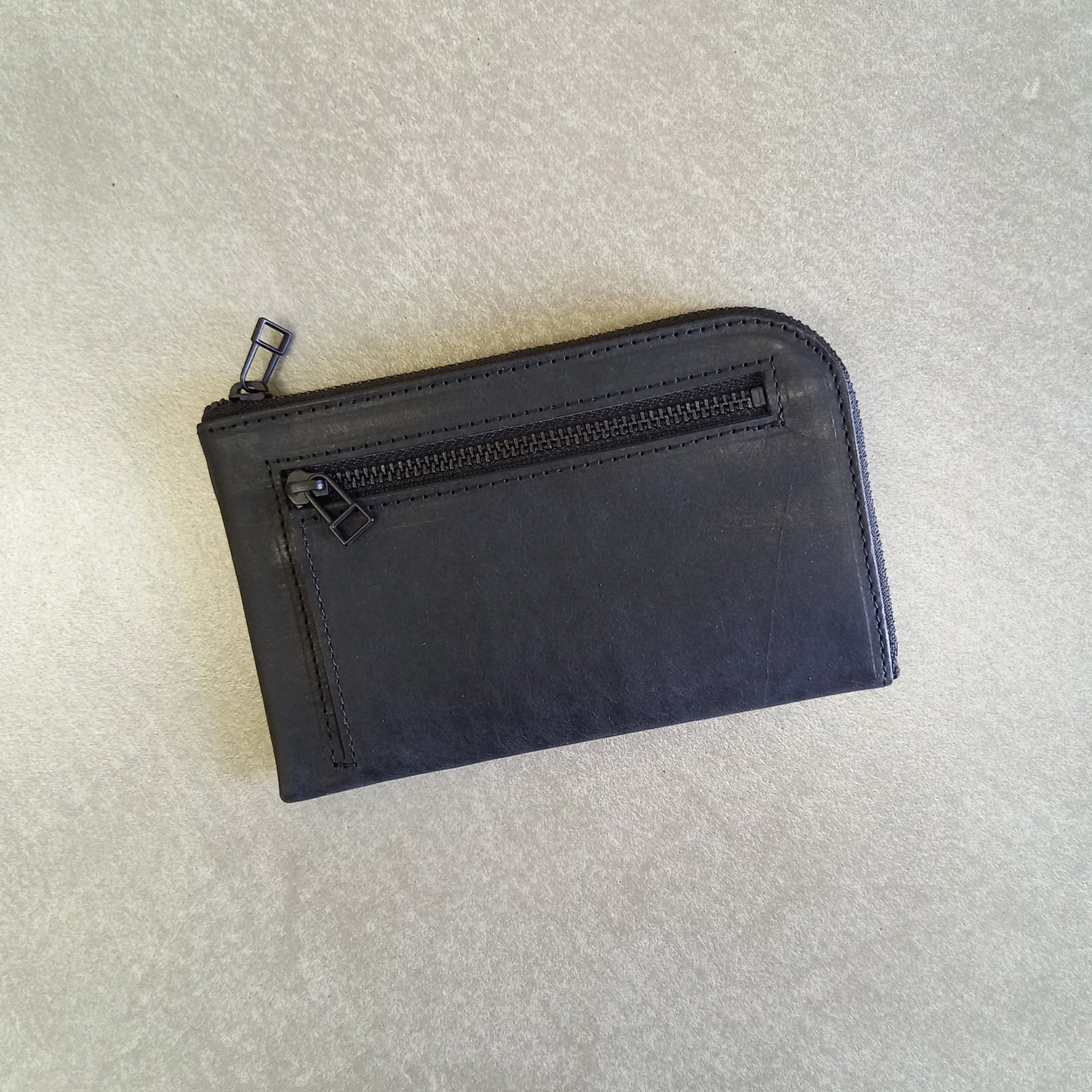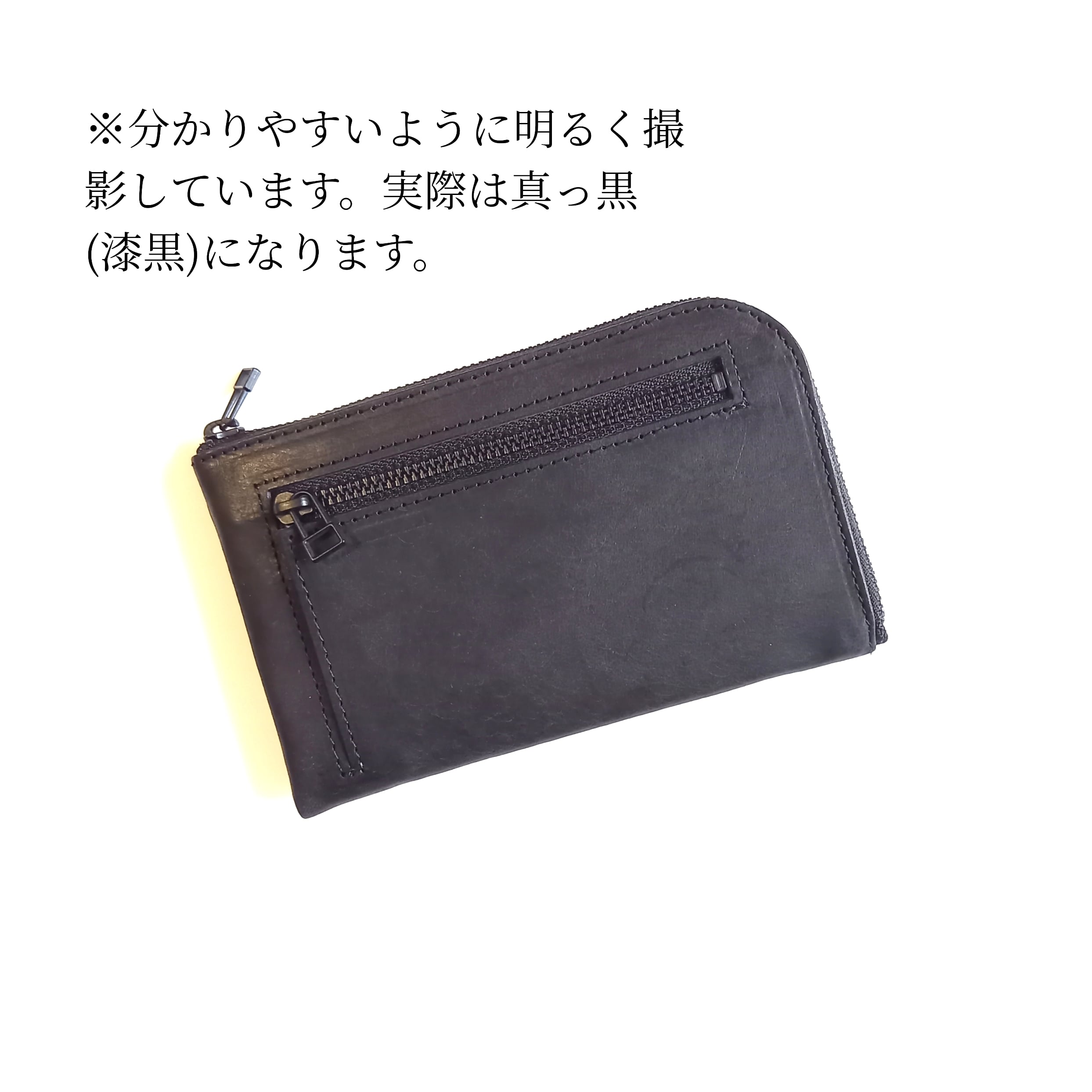 育てるミニ財布 マルゴー(ジェットブラック)イタリアンレザー◇薄くて軽いコンパクトL字ファスナー財布◇カード入れは10か所◇牛革