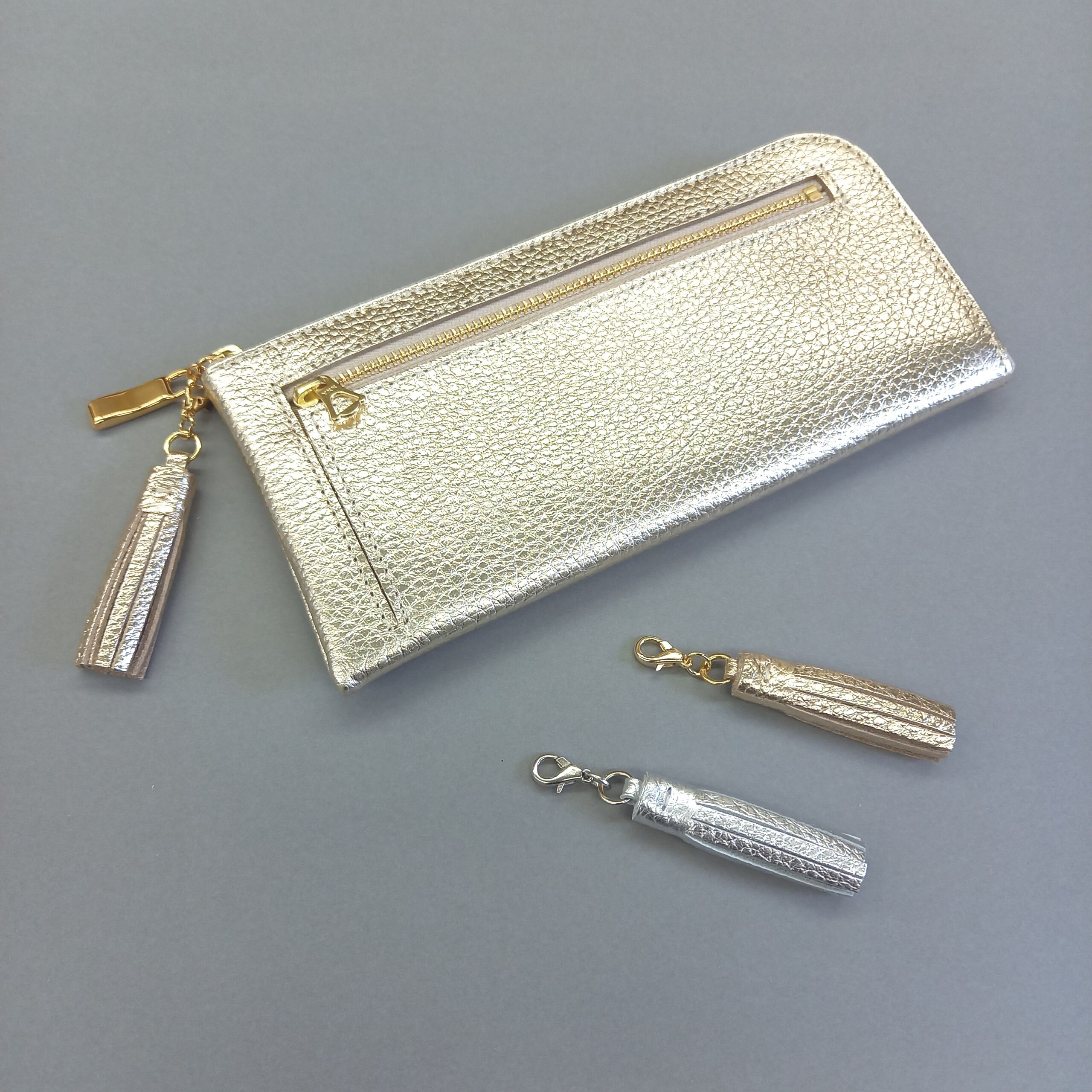本革タッセルチャーム◇お財布の引手に◇シャンパンゴールド・シルバー◇財布チャーム バッグチャーム キーホルダー