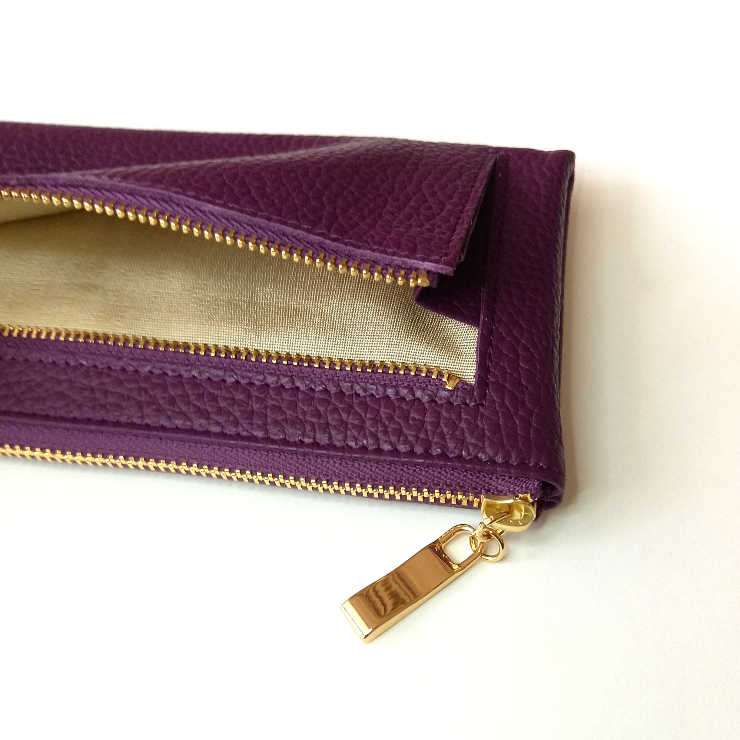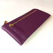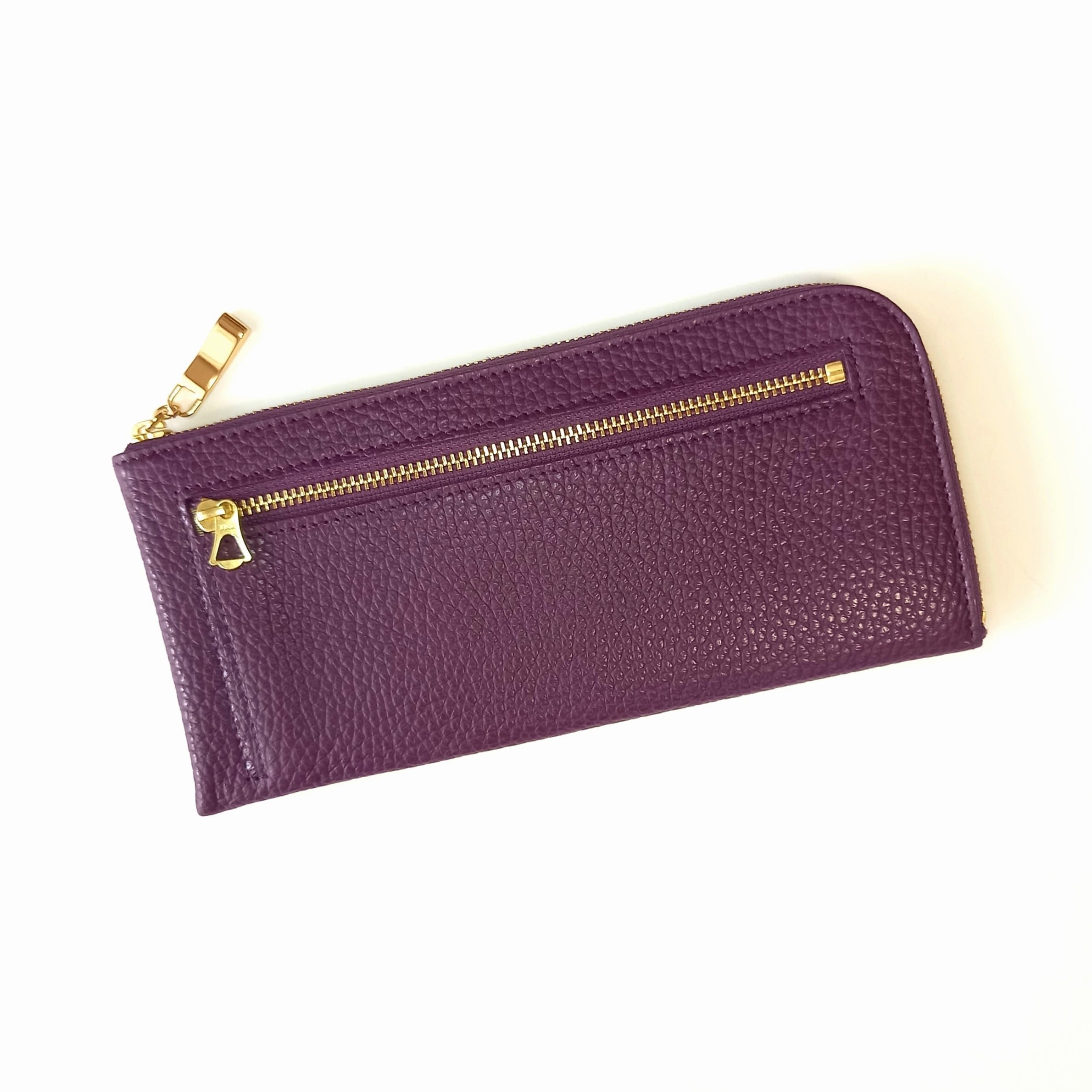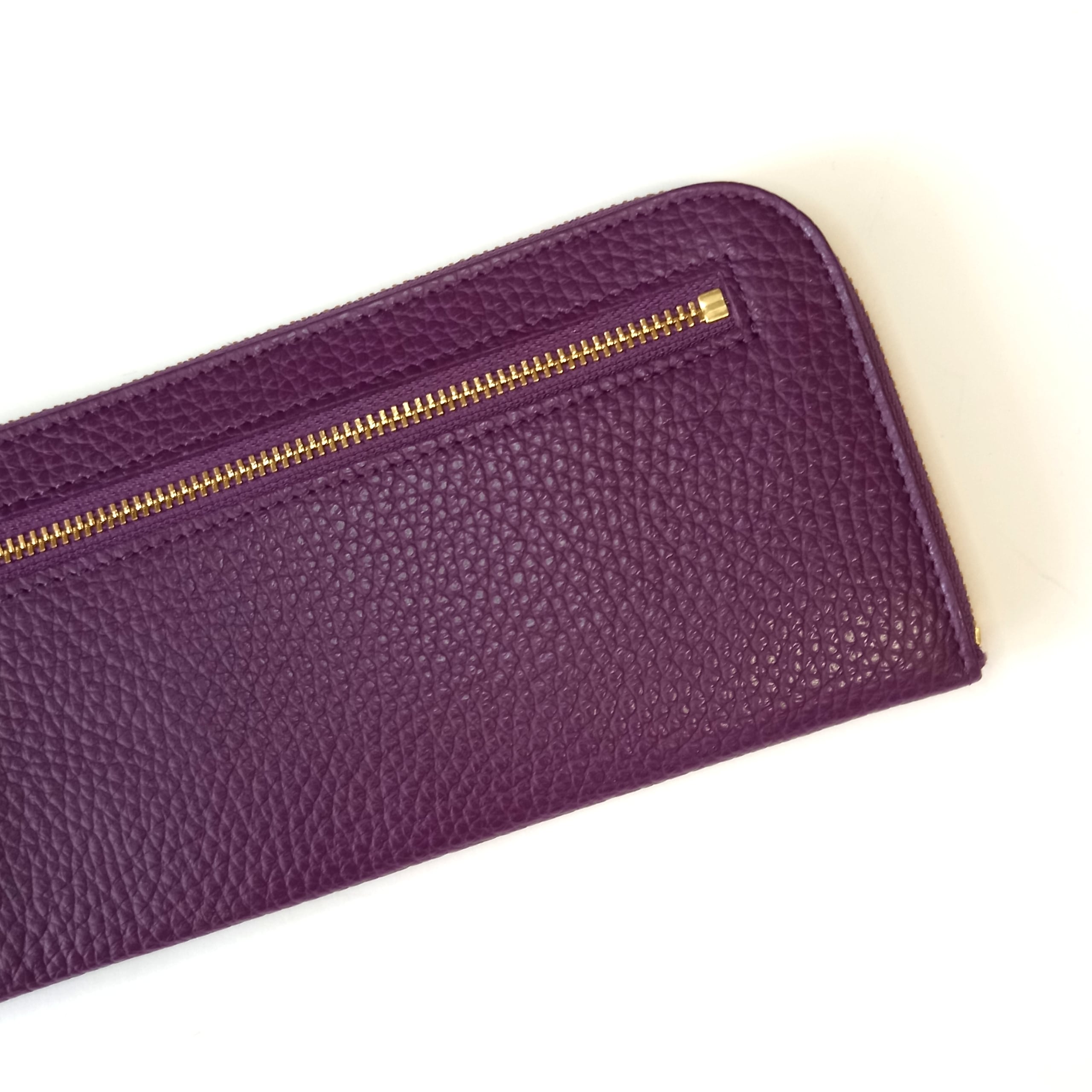 スリムで軽く大容量な長財布(プラム)カード入れは14か所!高級イタリアンレザー◇牛革シュリンク◇L字ファスナー財布【かわつむ】