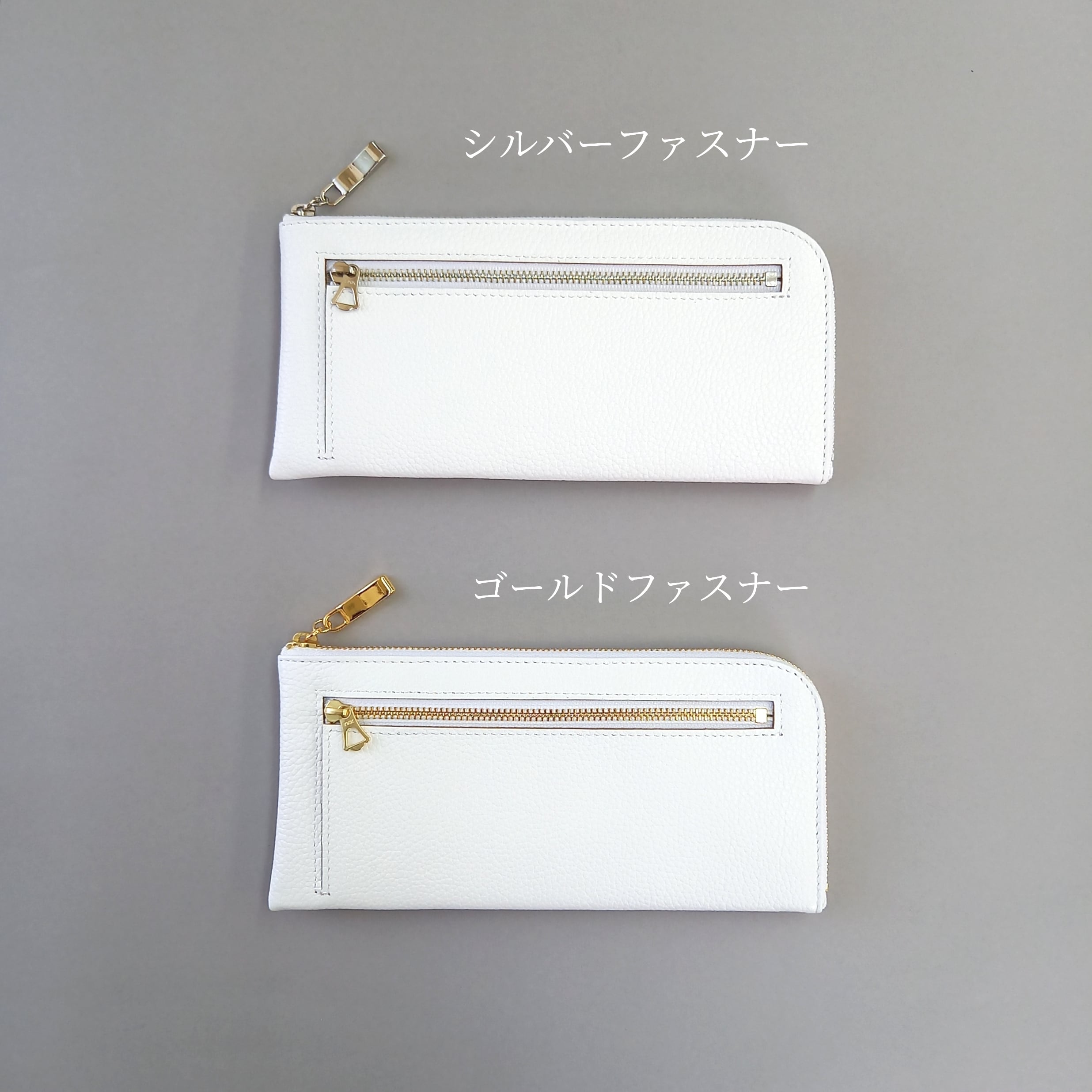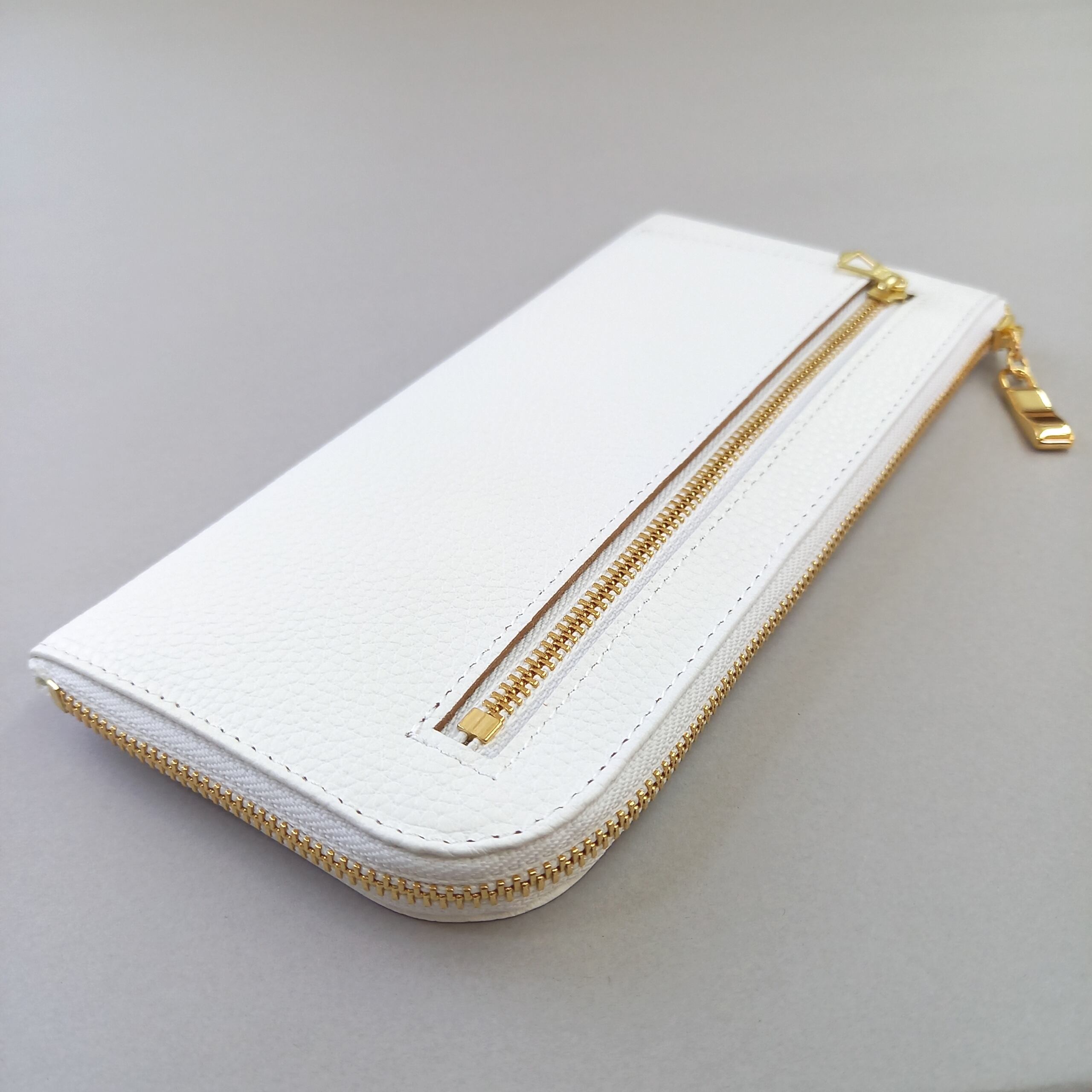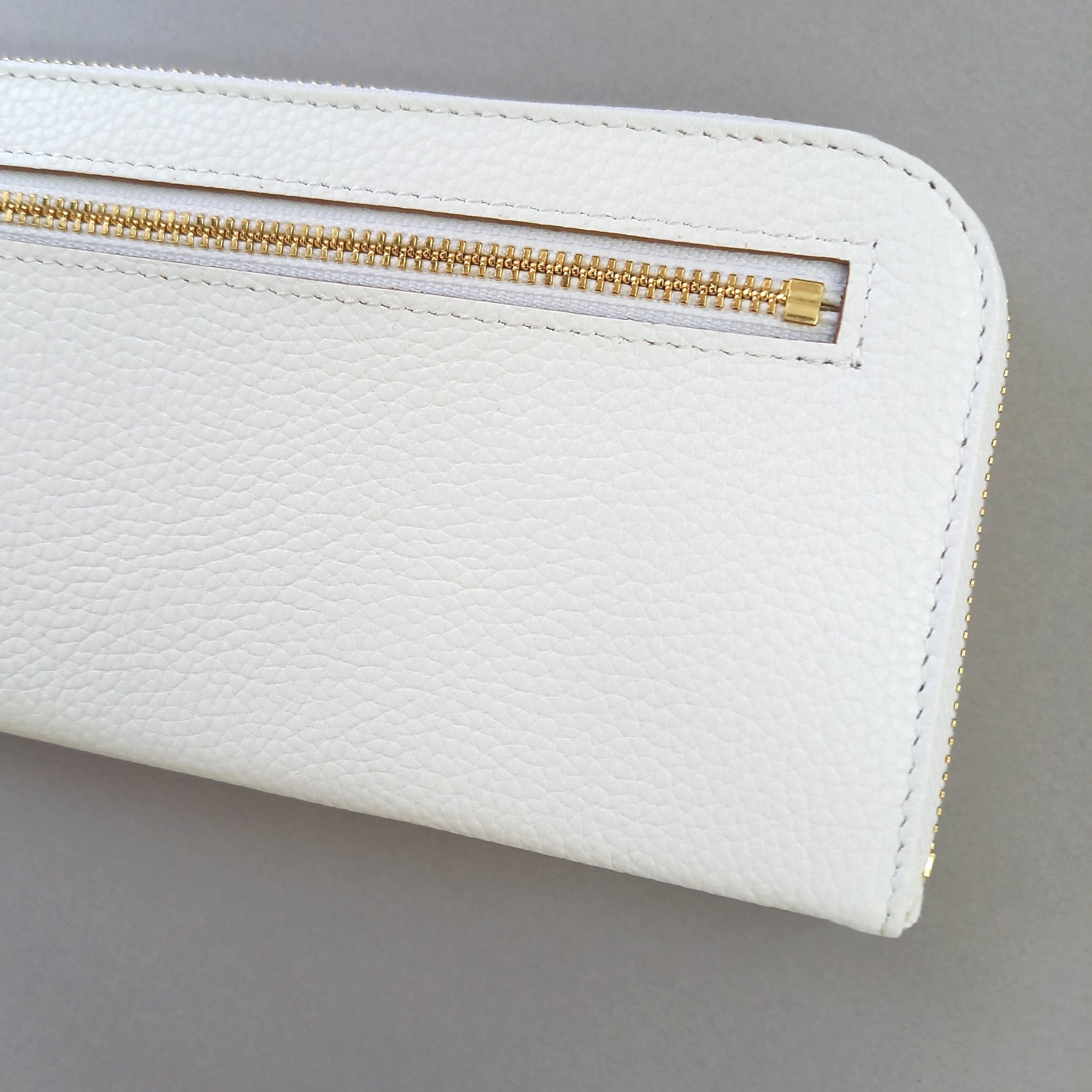 軽くて薄くて大容量!L字ファスナー長財布(ホワイト)14枚カードポケット 国産牛革シュリンク型押し◇レザー 皮
