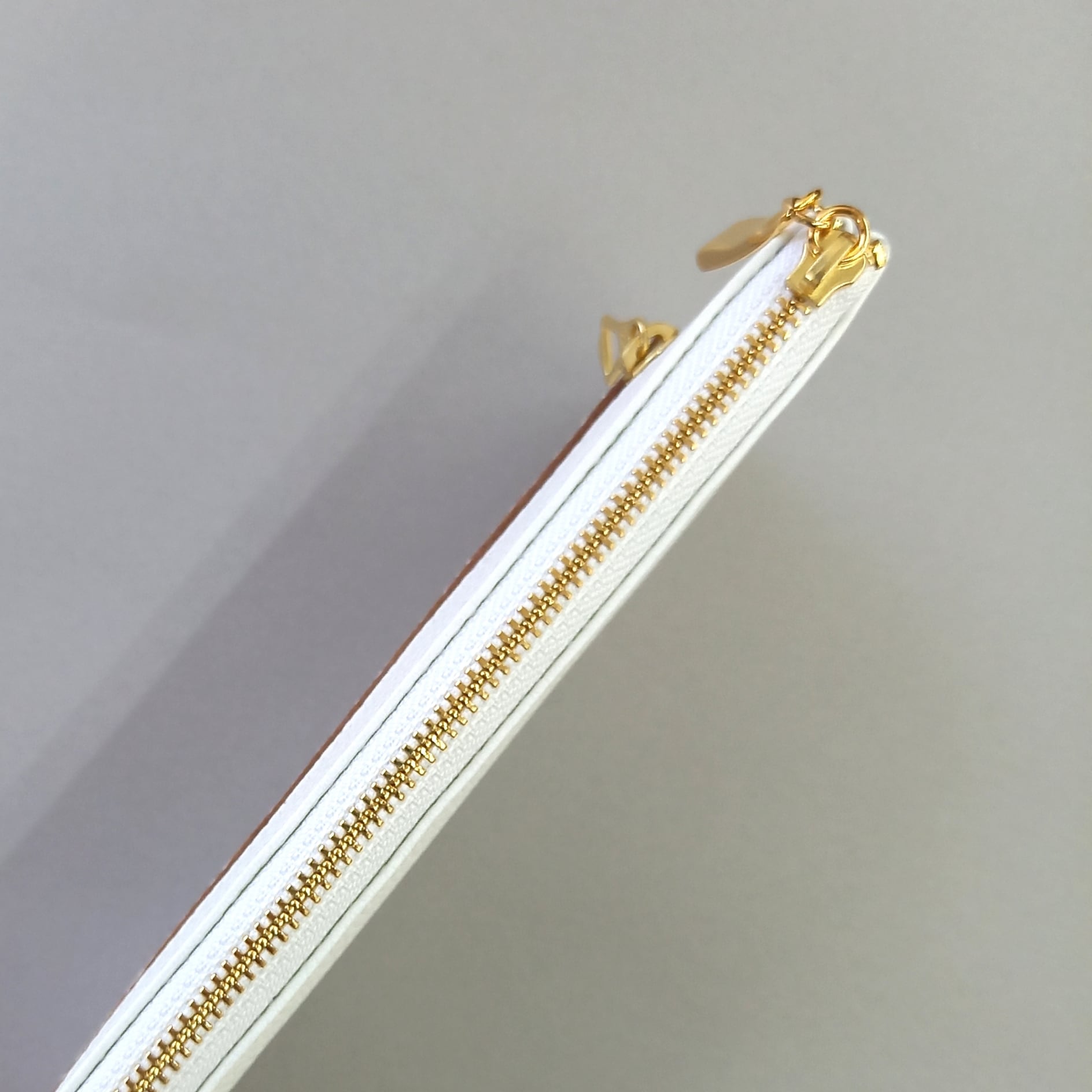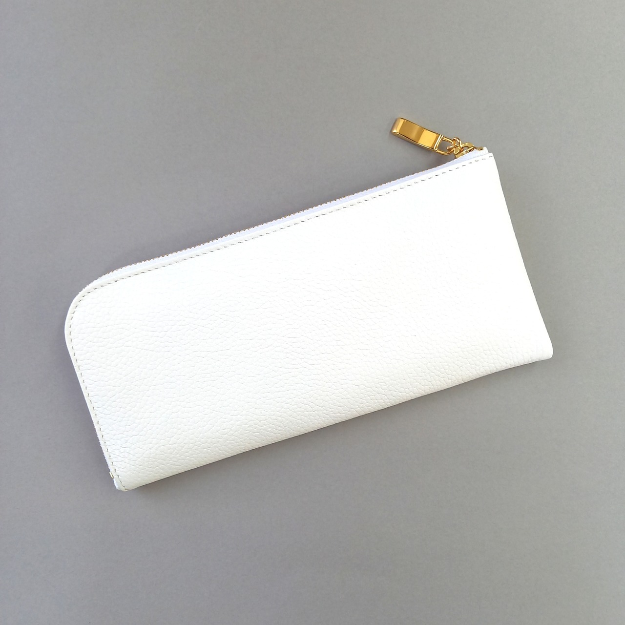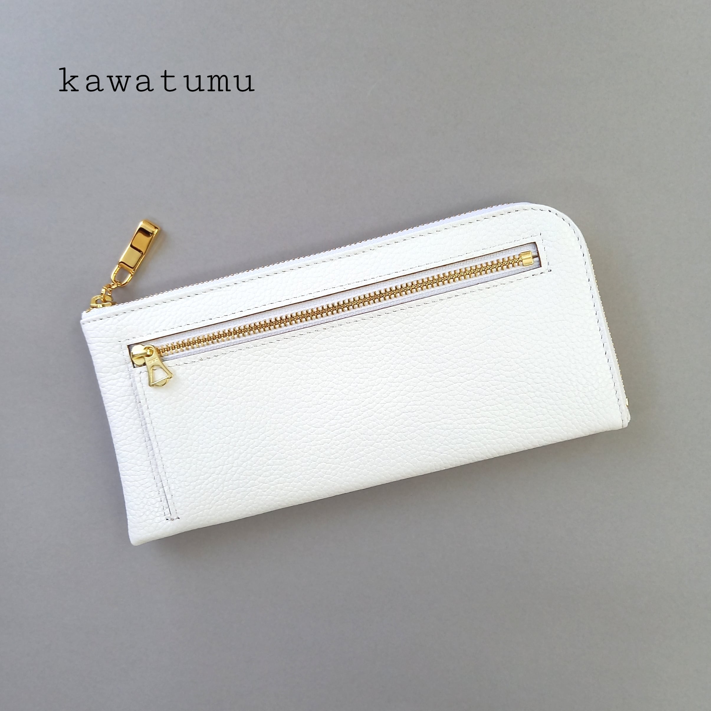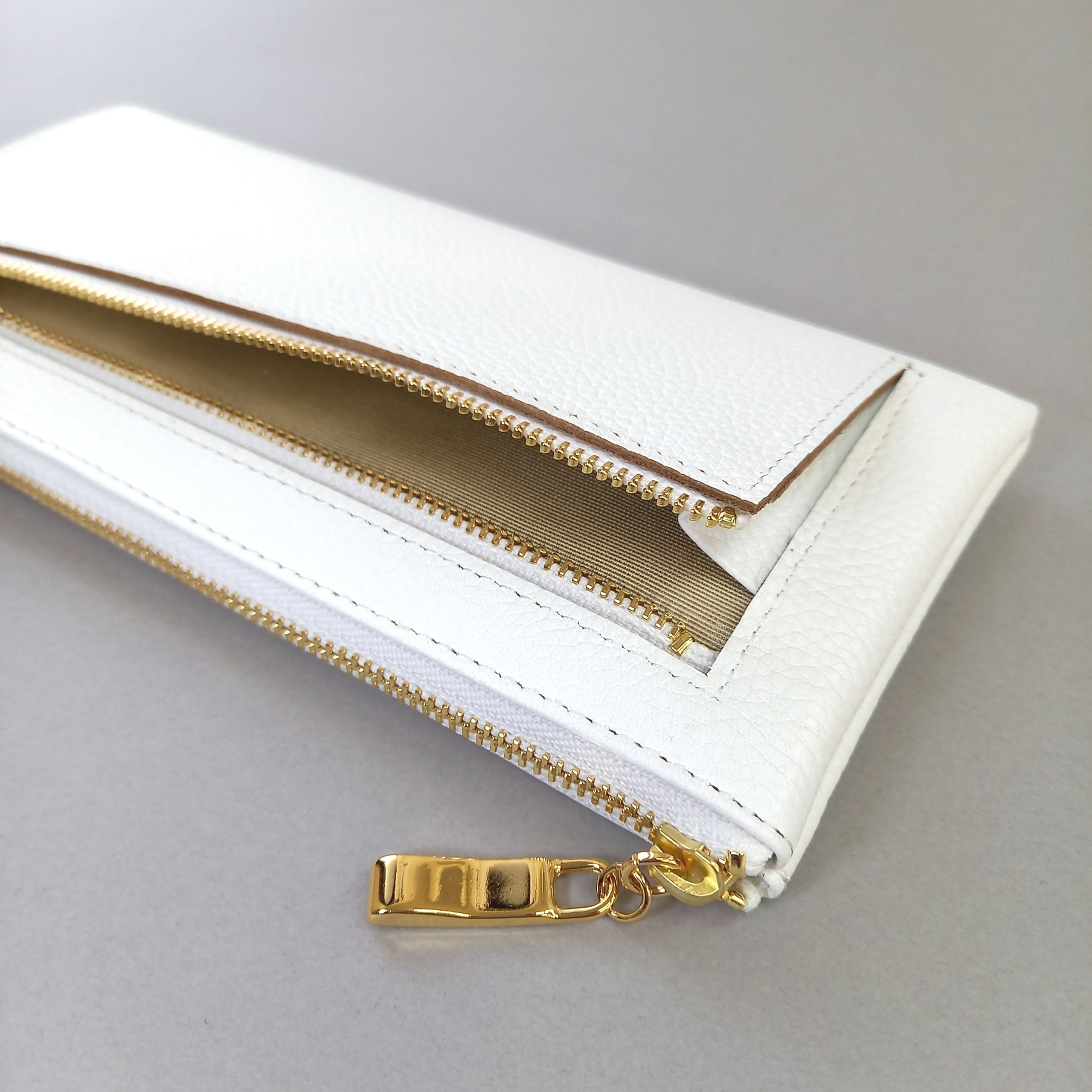 軽くて薄くて大容量!L字ファスナー長財布(ホワイト)14枚カードポケット 国産牛革シュリンク型押し◇レザー 皮