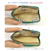 カードが入るポケットは14か所、お札入れは2か所あります。