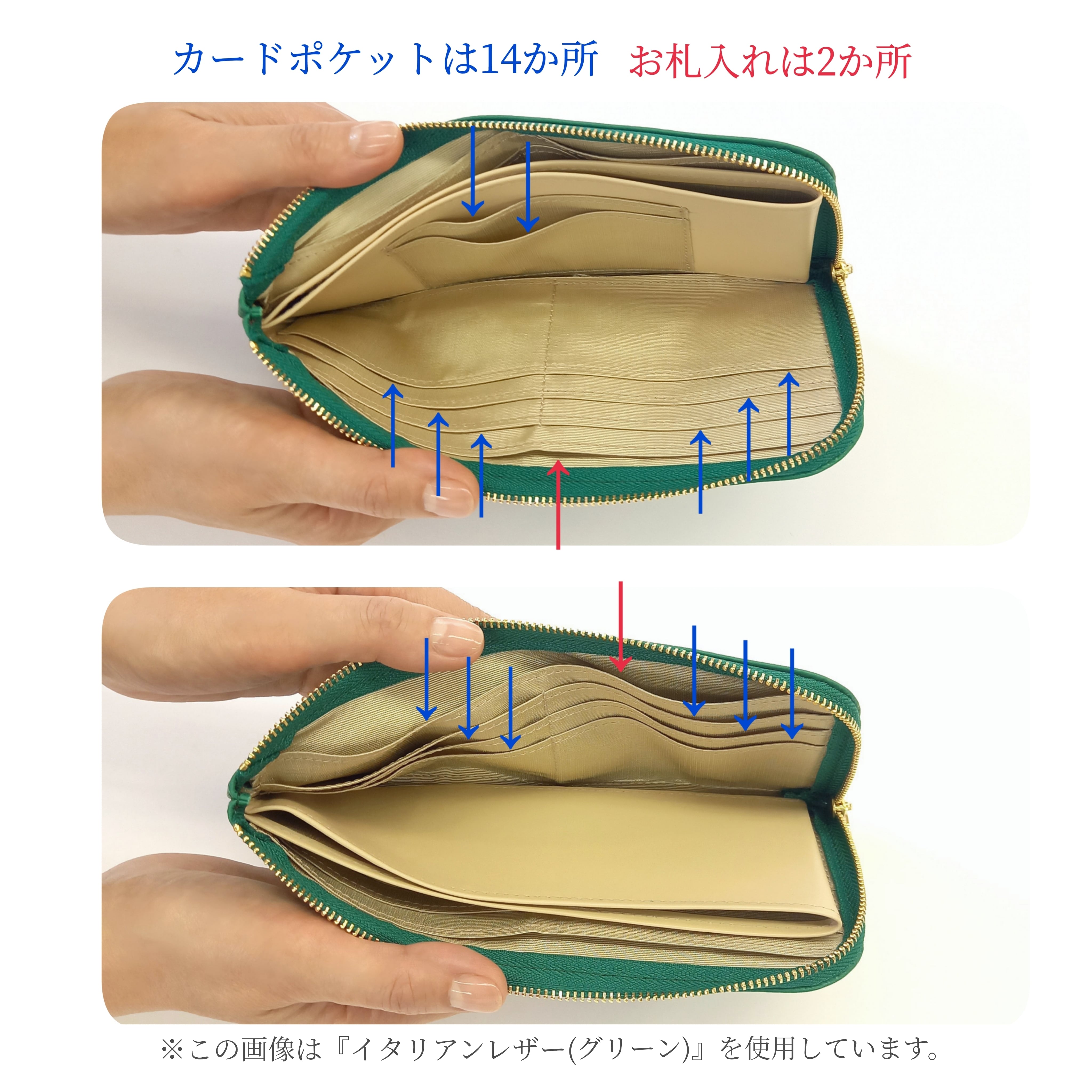 薄マチで軽いのに、たくさん入るL字ファスナー長財布です。