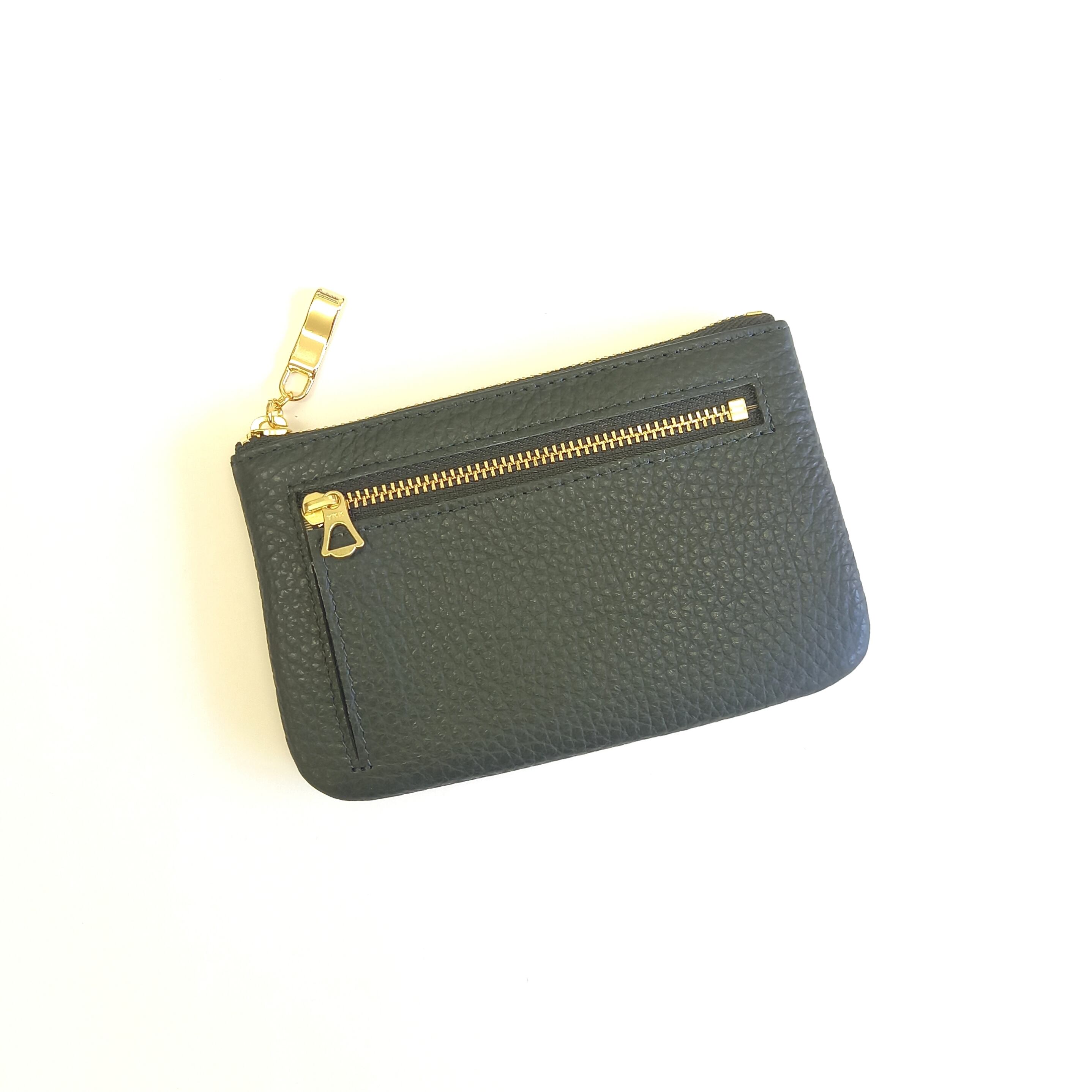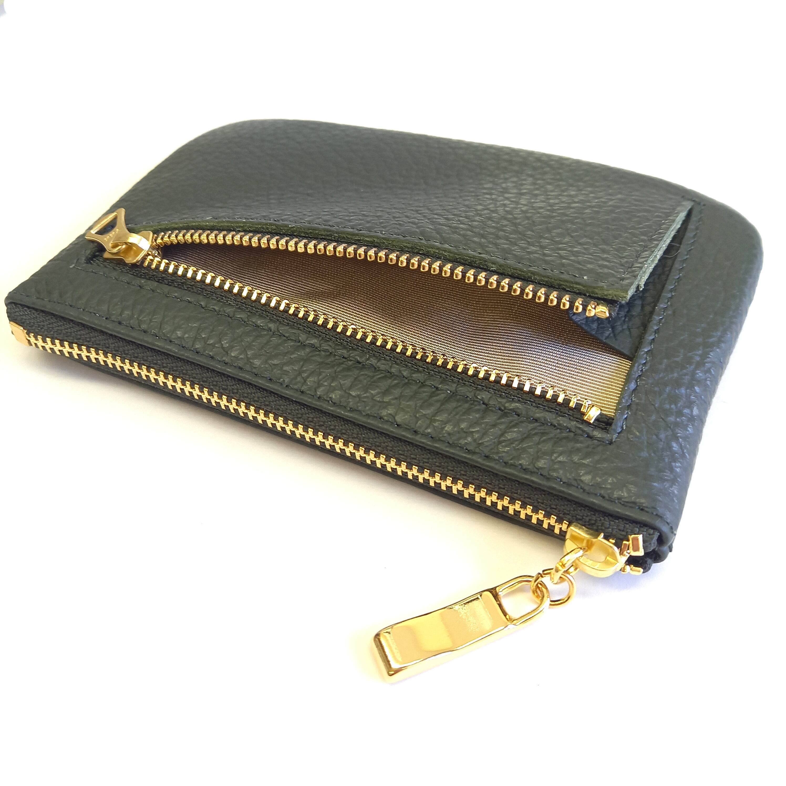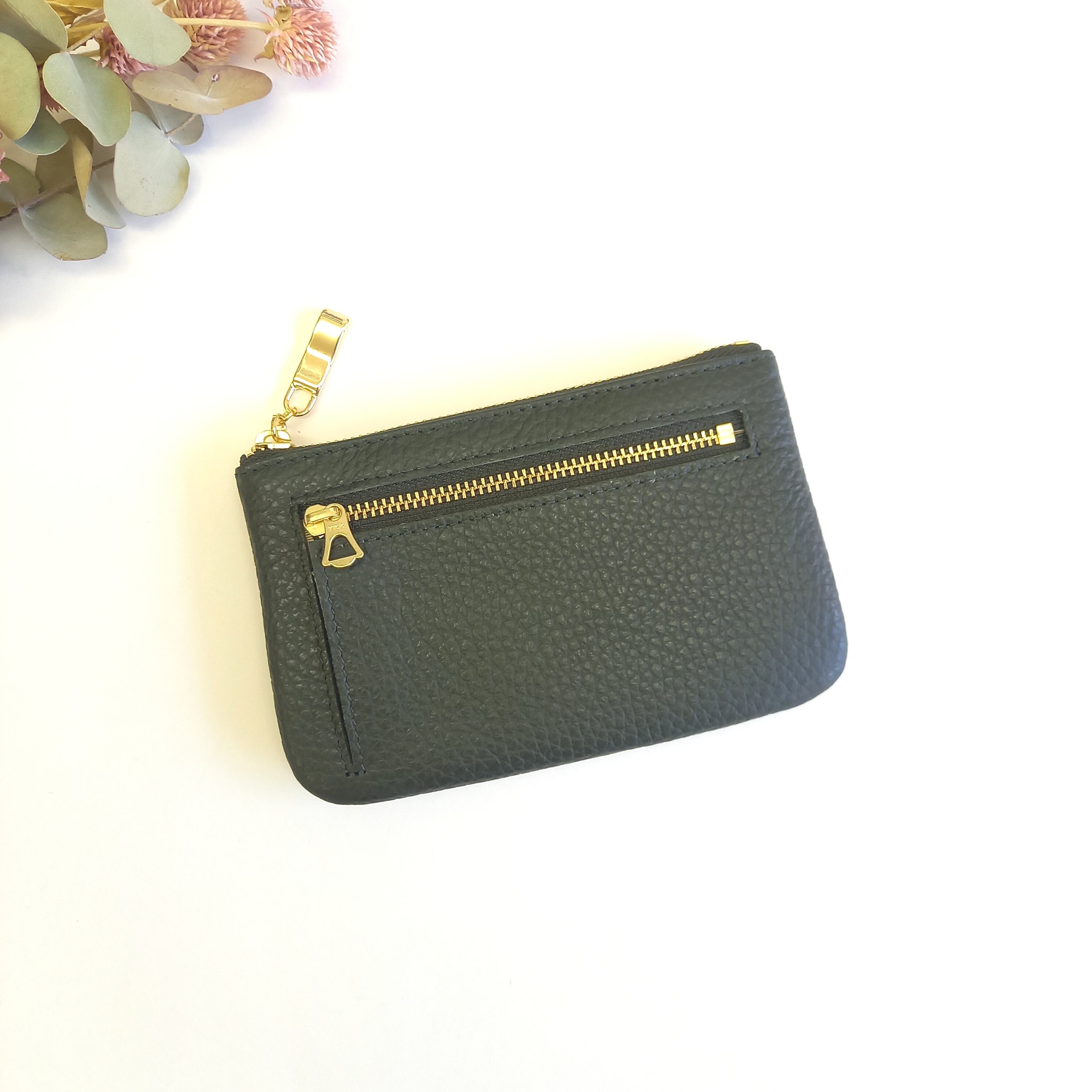 お財布にもなる本革ポーチ(チャコールダークグリーン) ミニ財布としてもポーチとしても使えるマルチケース◇イタリアンレザー【かわつむ】