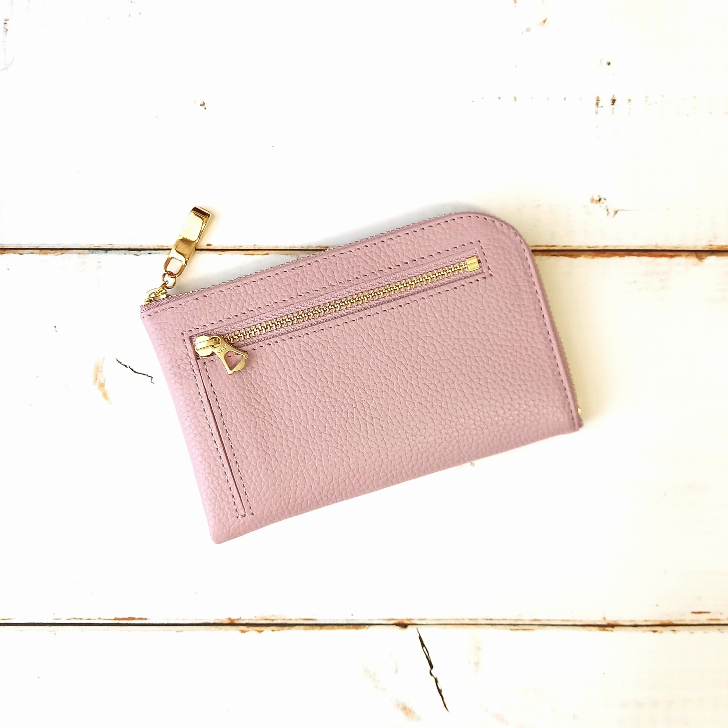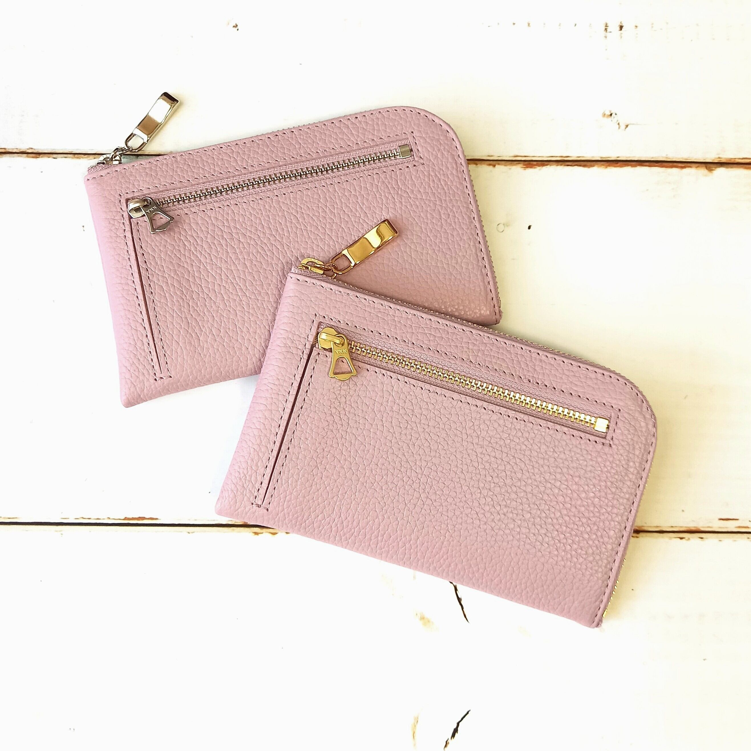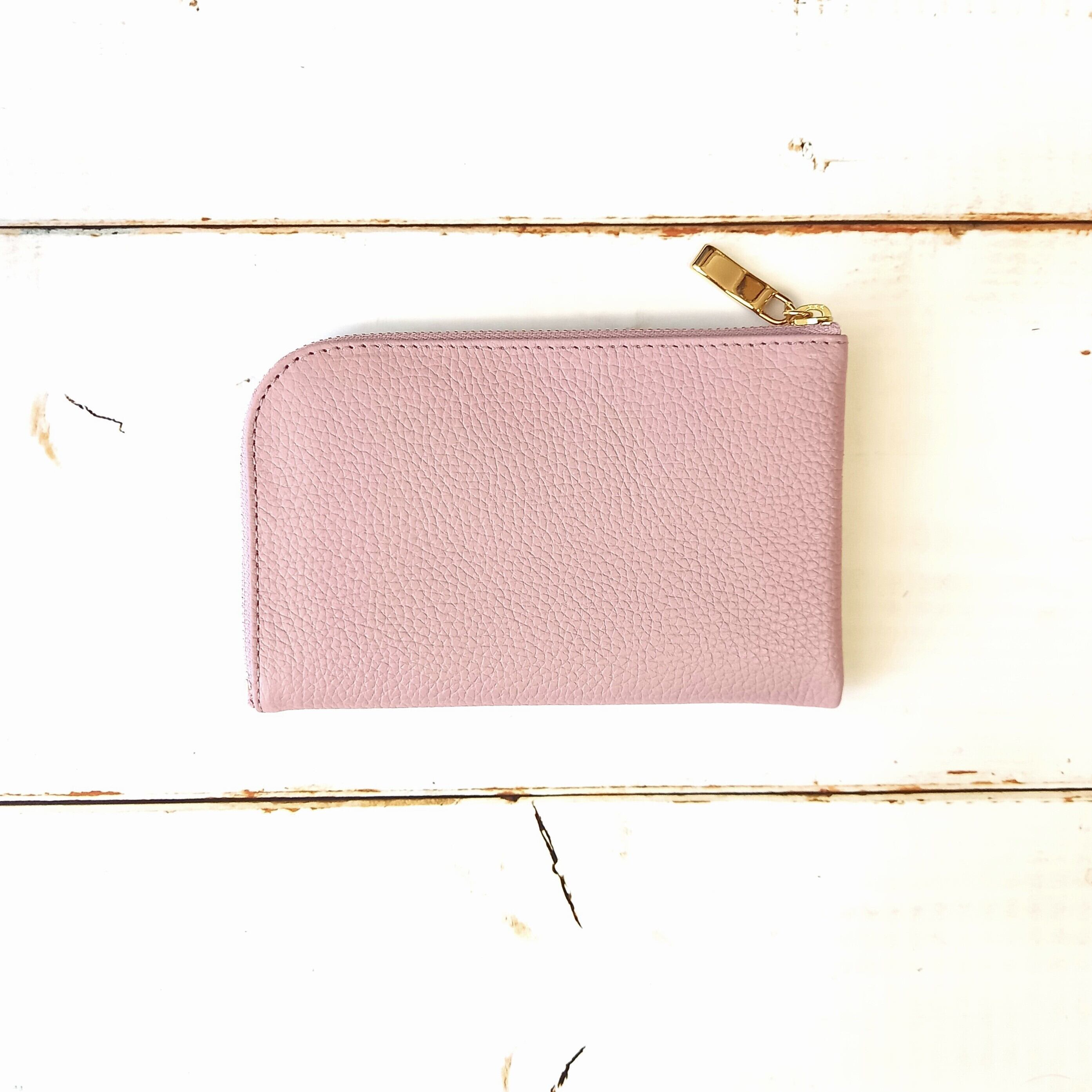 スリムで軽いミニ財布(くすみピンク)10枚カードポケット◇国産牛革シュリンク型押し◇ファスナー選べる【かわつむ】