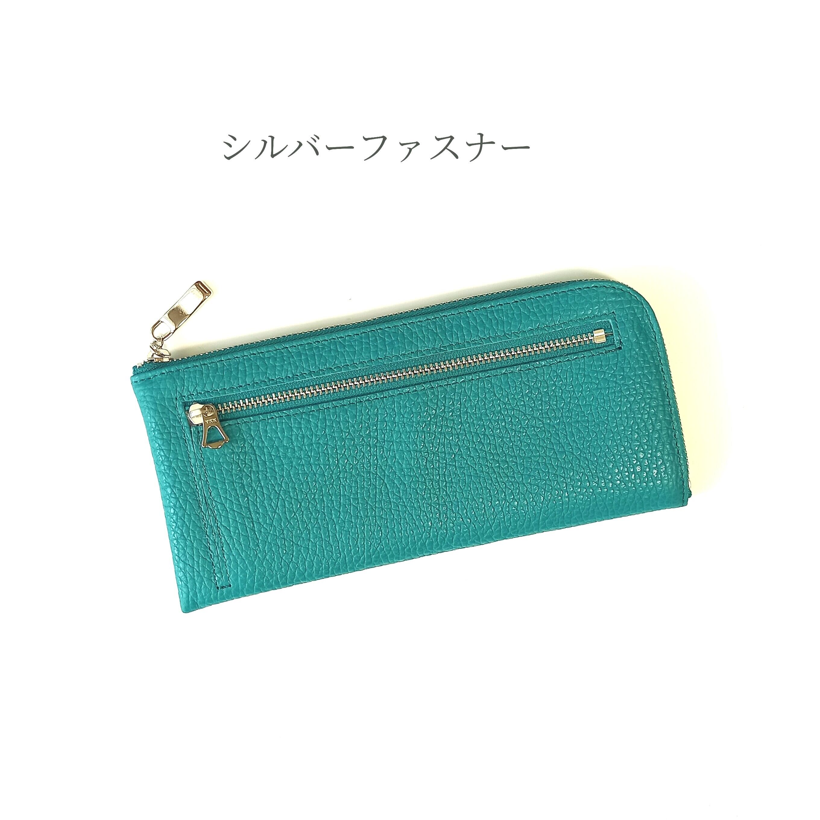スリムで軽く大容量な長財布(ターコイズグリーン)カード入れは14か所!高級イタリアンレザー◇牛革シュリンク◇L字ファスナー財布【かわつむ】