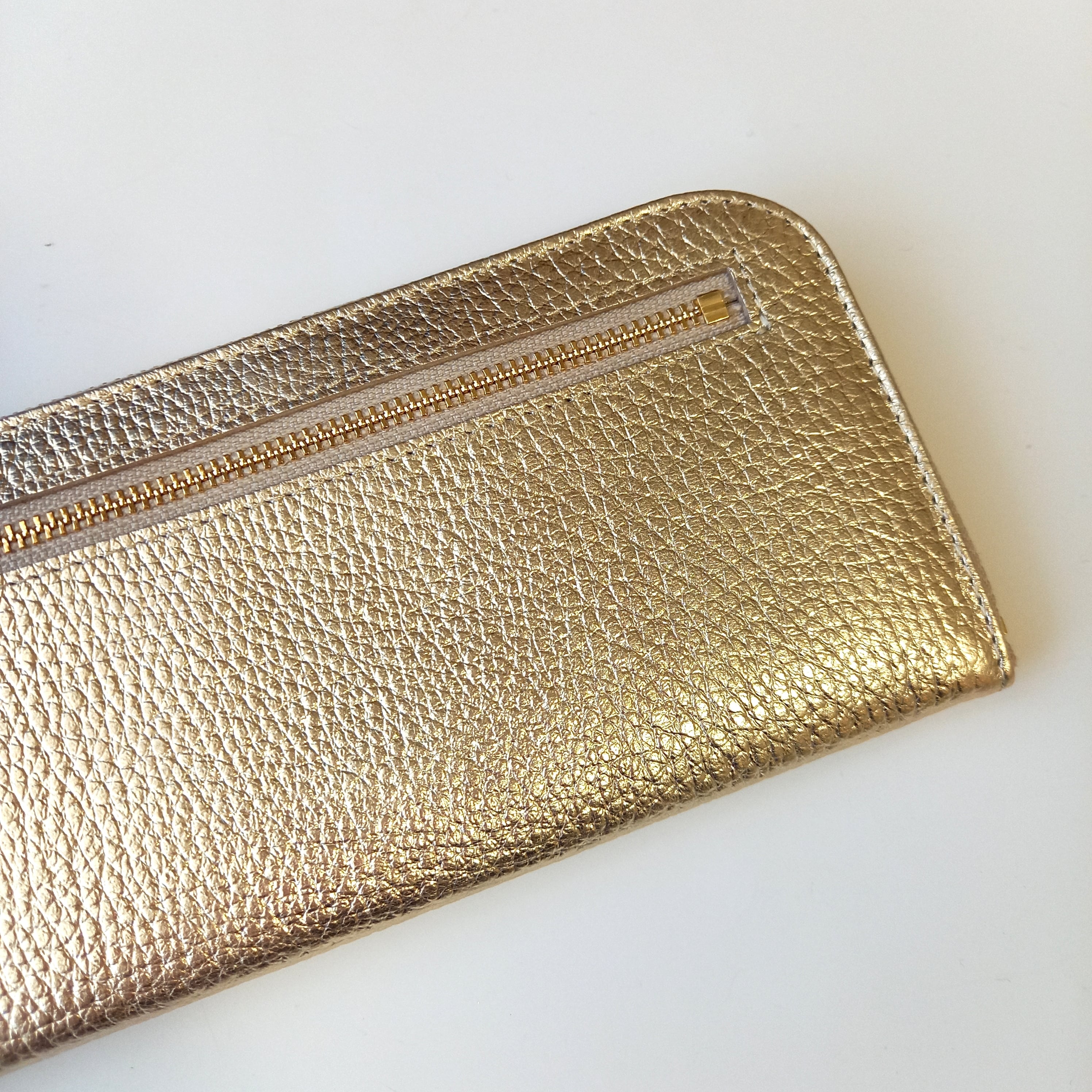 牛革にシュリンクの型押しを施し、ゴールドの箔を張り合わせています。