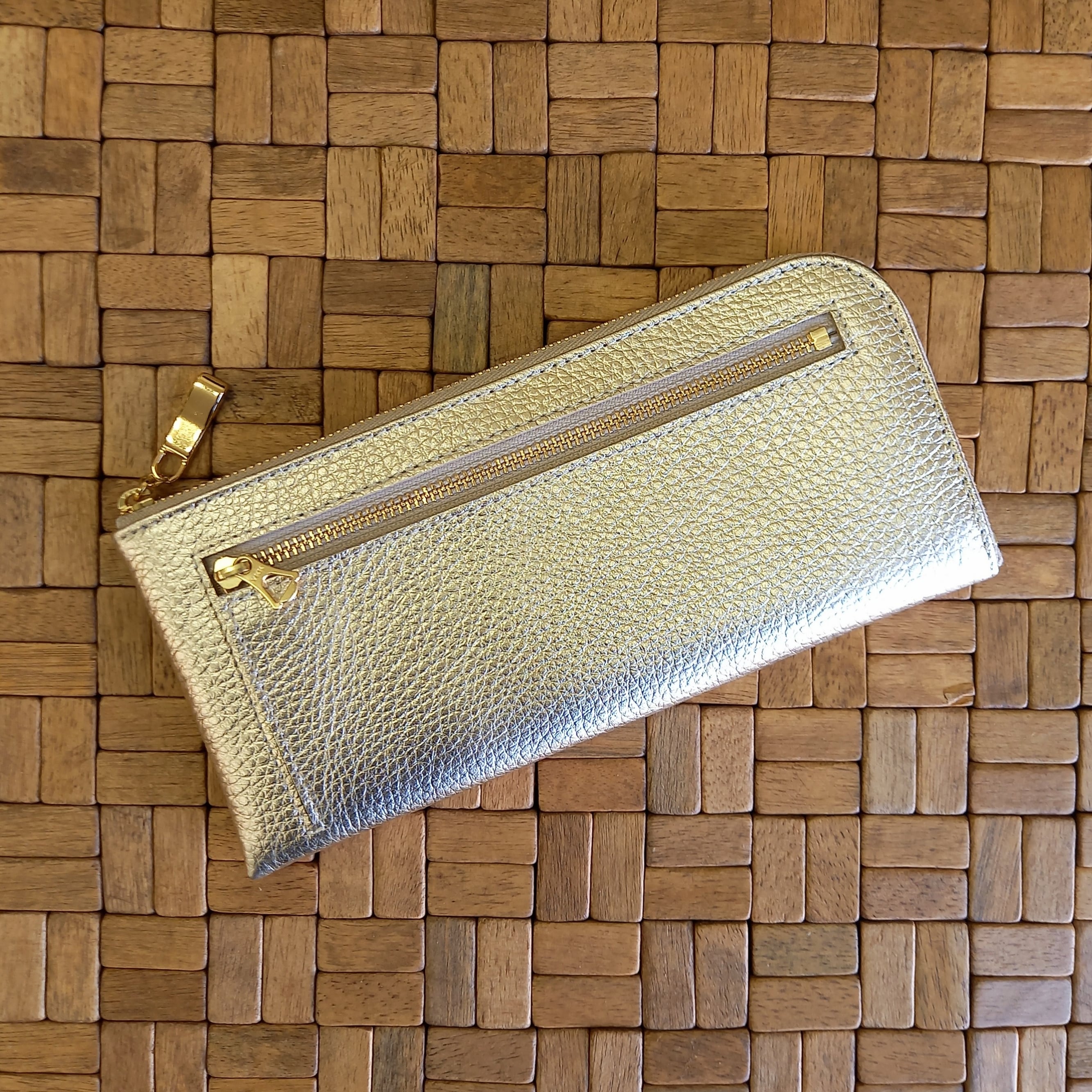 きらりと光る存在感はバッグの中で探しやすく、また手触りも良い皮革です。