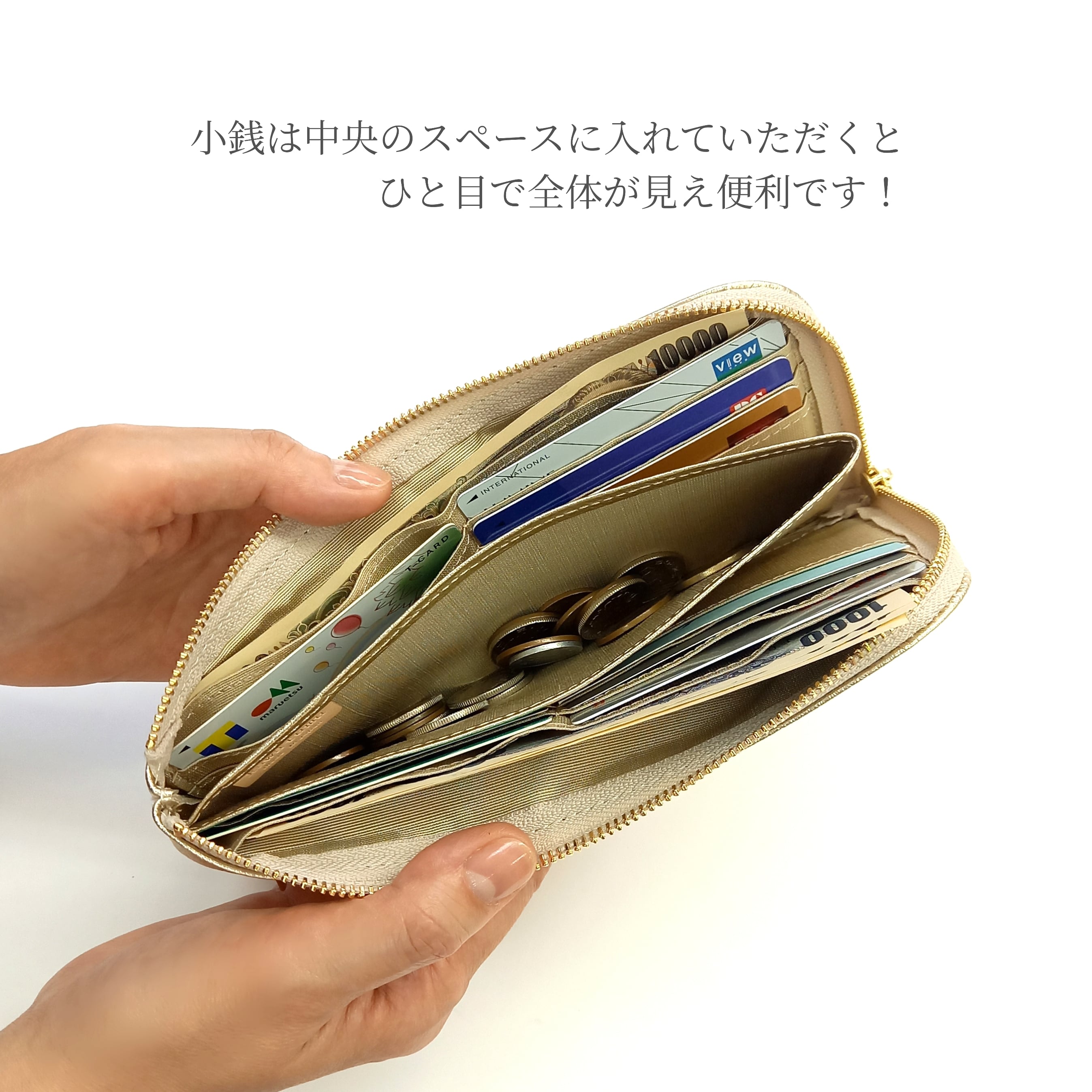 スリムで軽く大容量な長財布(シャンパンゴールド)カード入れは14か所!牛革シュリンク型押し◇L字ファスナー財布【かわつむ】