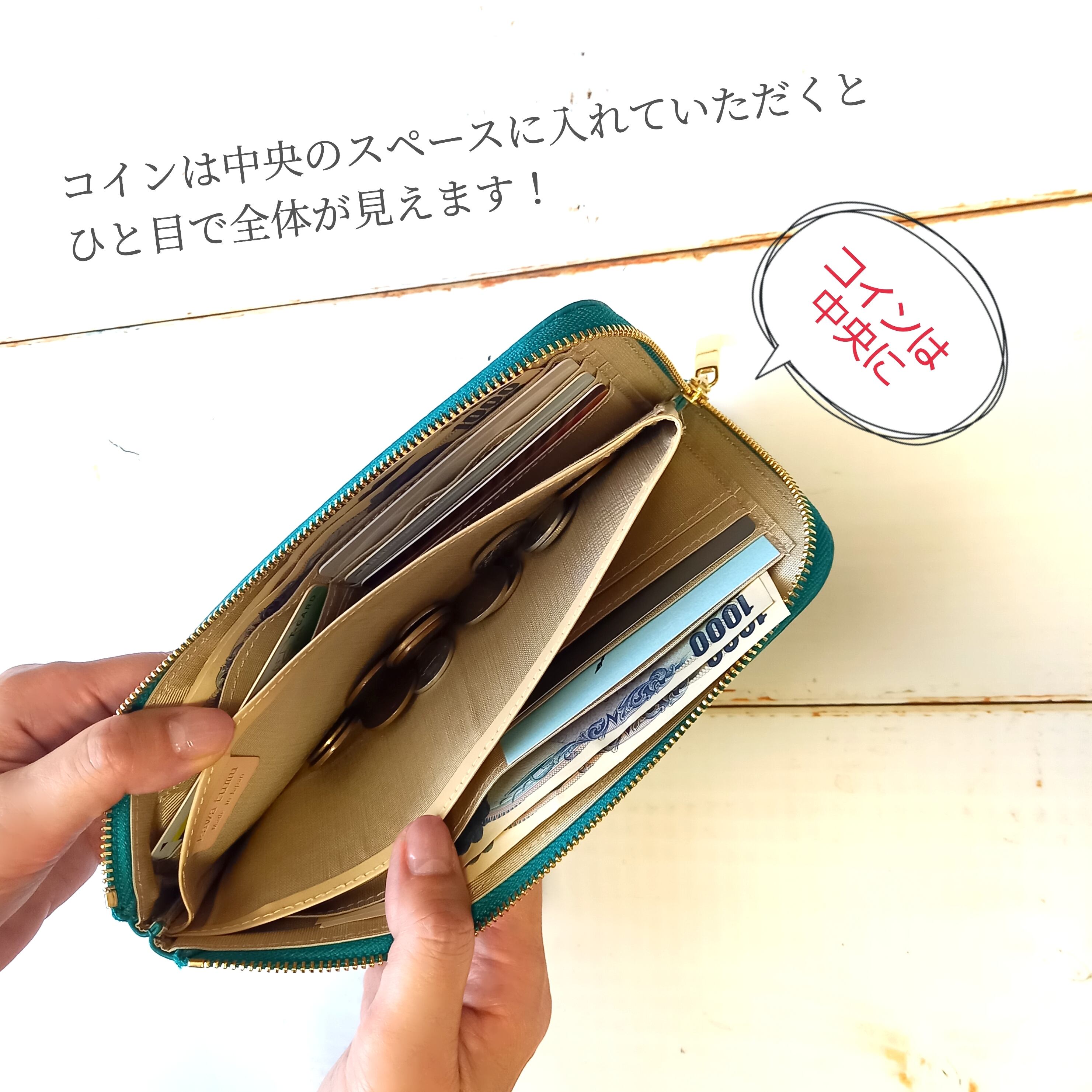 小銭はぜひ内側中央のスペースに入れてお使いください。