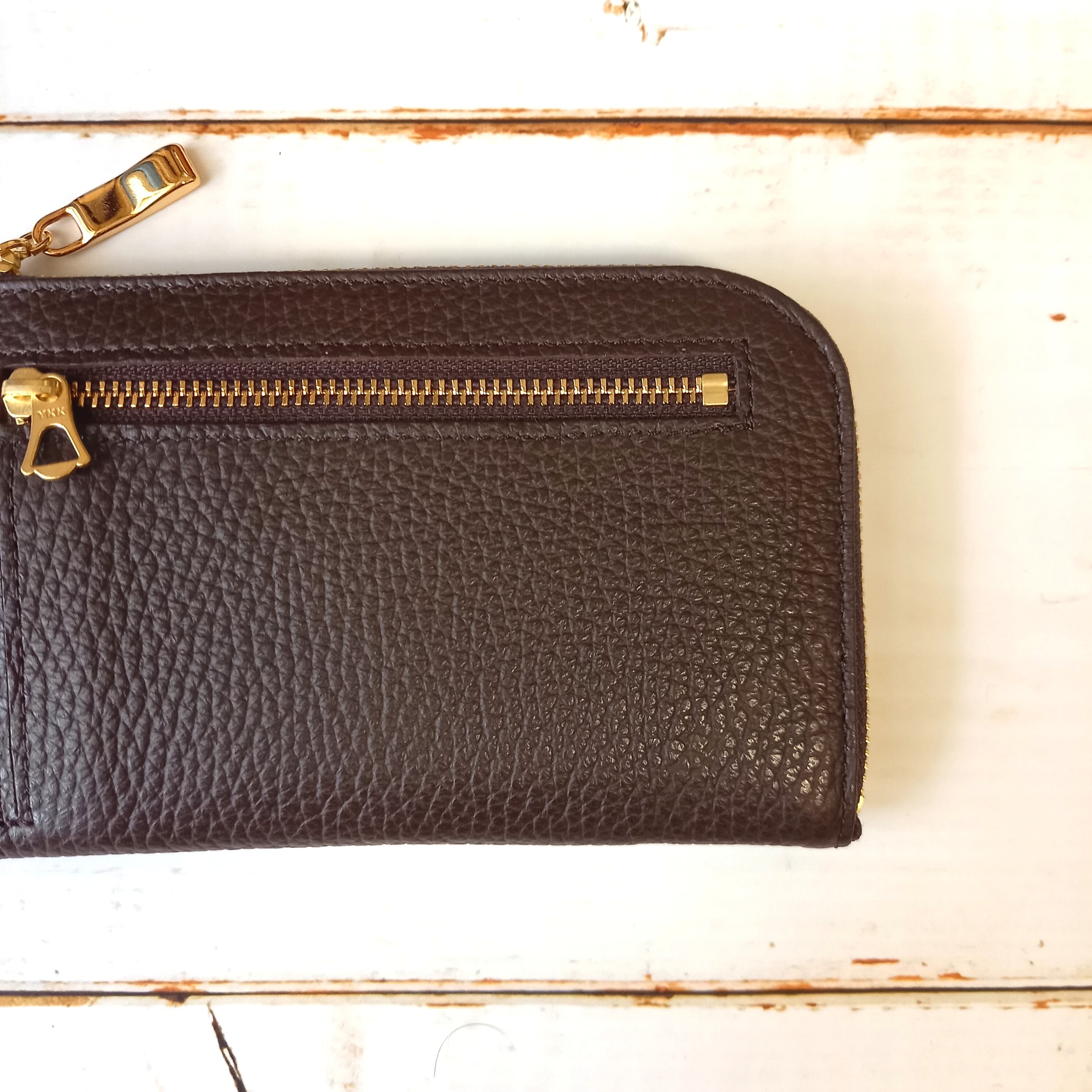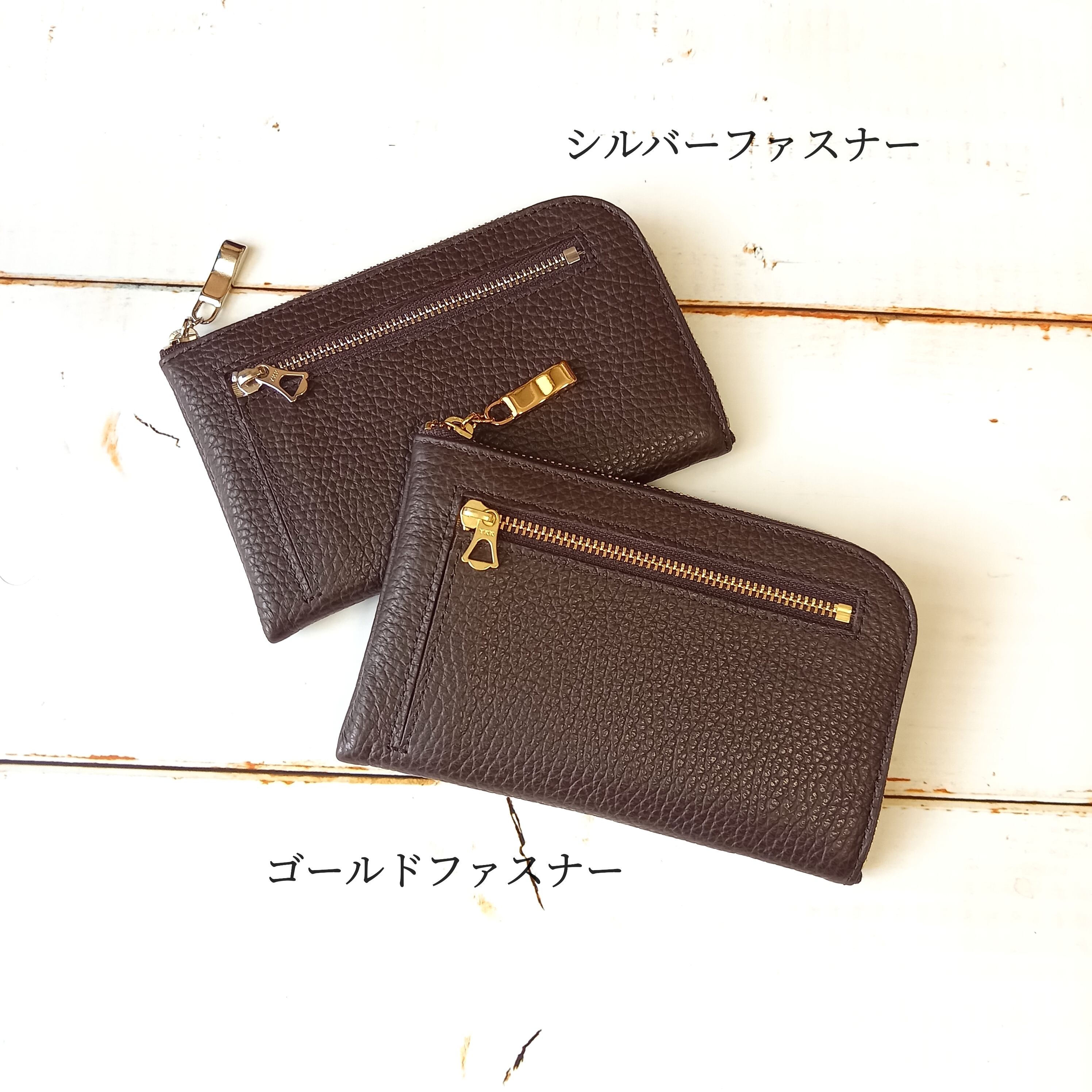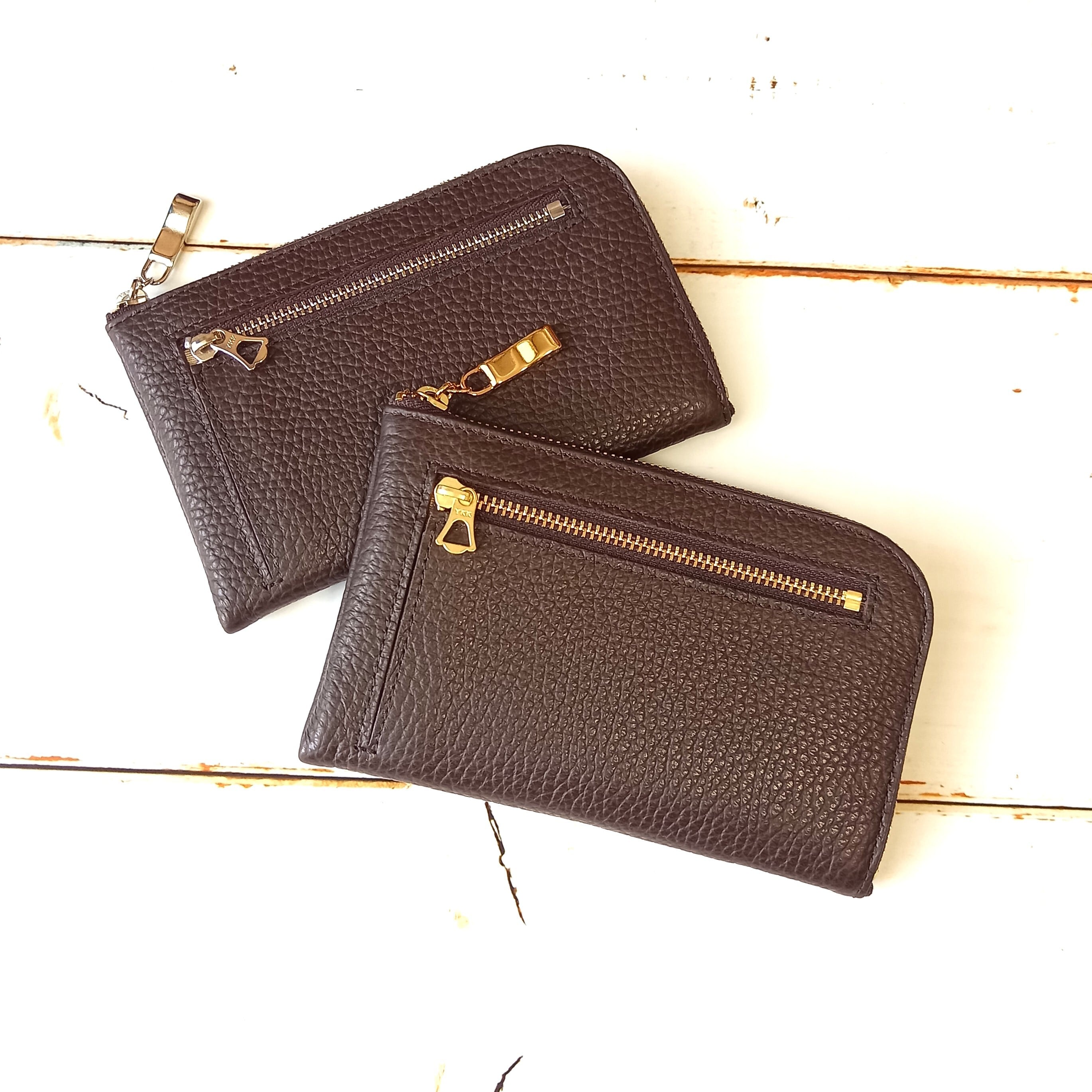 スリムで軽いミニ財布(チョコレートブラウン) 10枚カードポケット◇高級イタリアンレザー◇ファスナー選べる【かわつむ】L字ファスナー財布