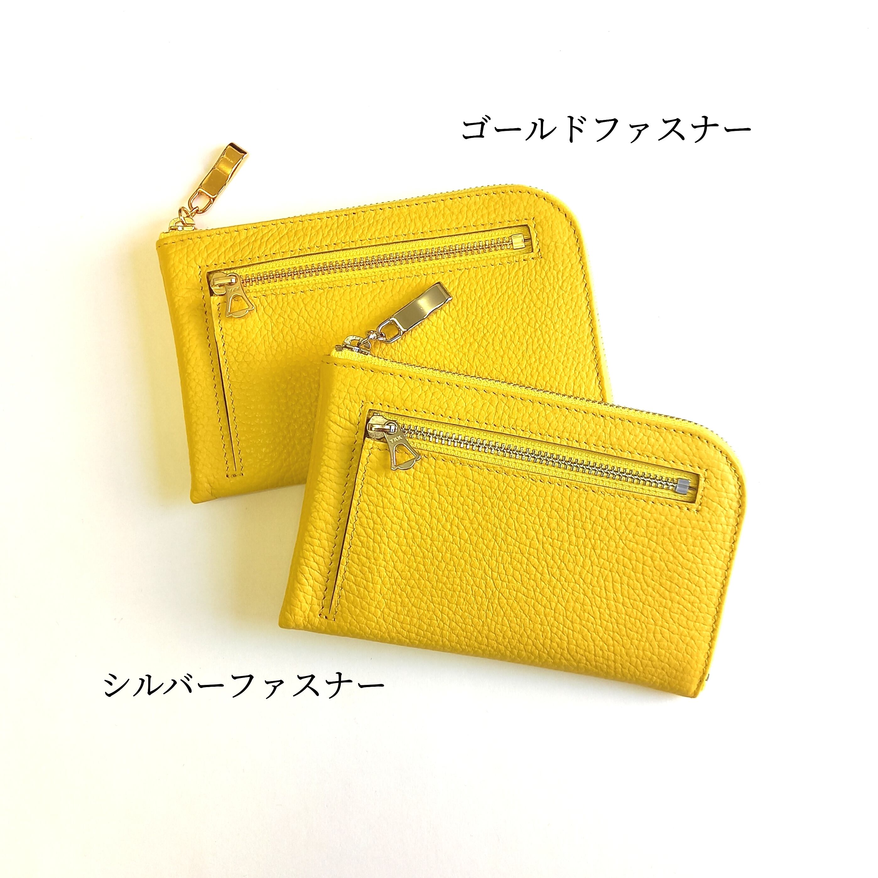 スリムで軽いミニ財布(イエロー) 10枚カードポケット◇高級イタリアンレザー◇ファスナー選べる【かわつむ】L字ファスナー財布