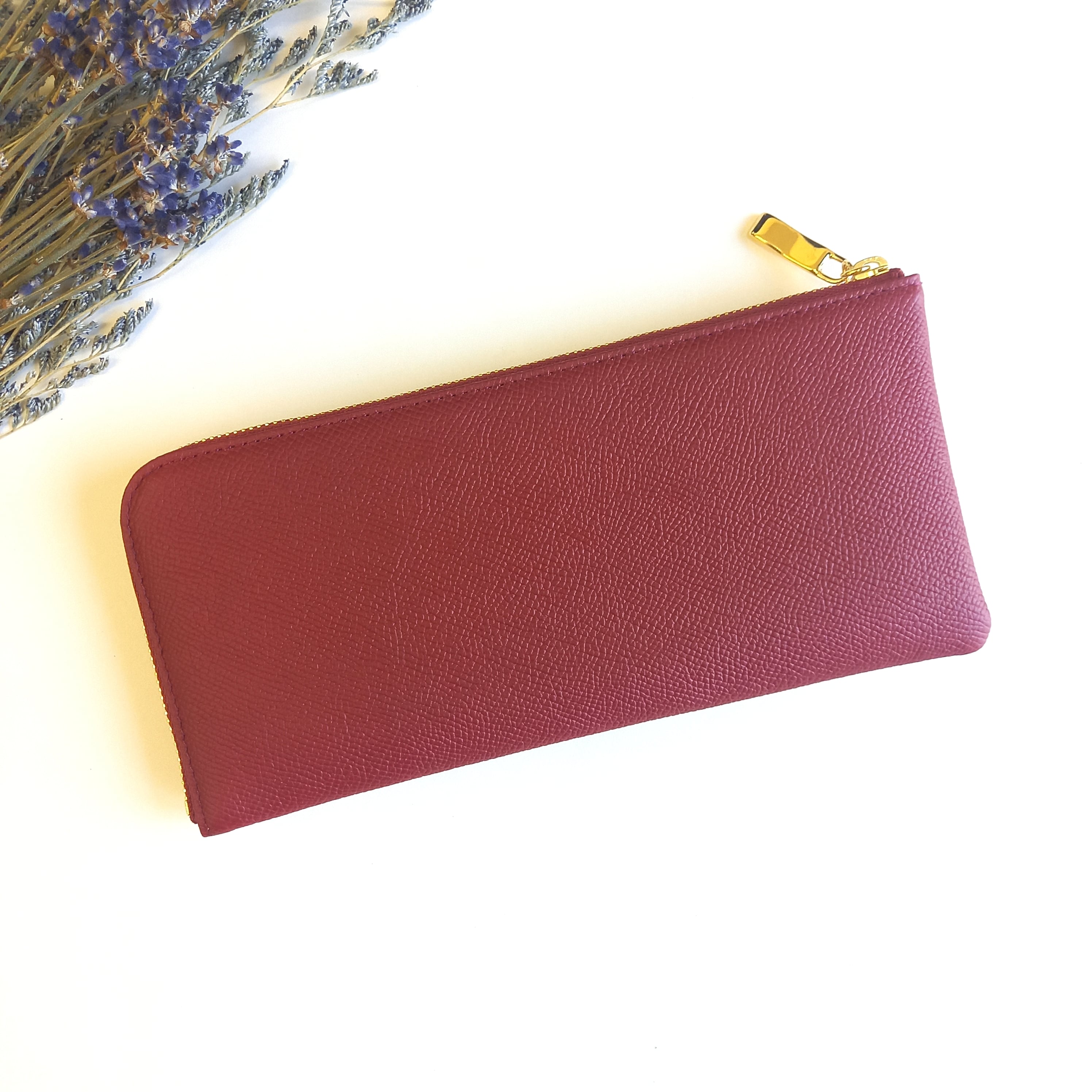 【最高級革】24枚もカードが入るスリム長財布(ディープレッド) 大容量なのに軽くて薄い!高品質カーフレザー◇送料無料