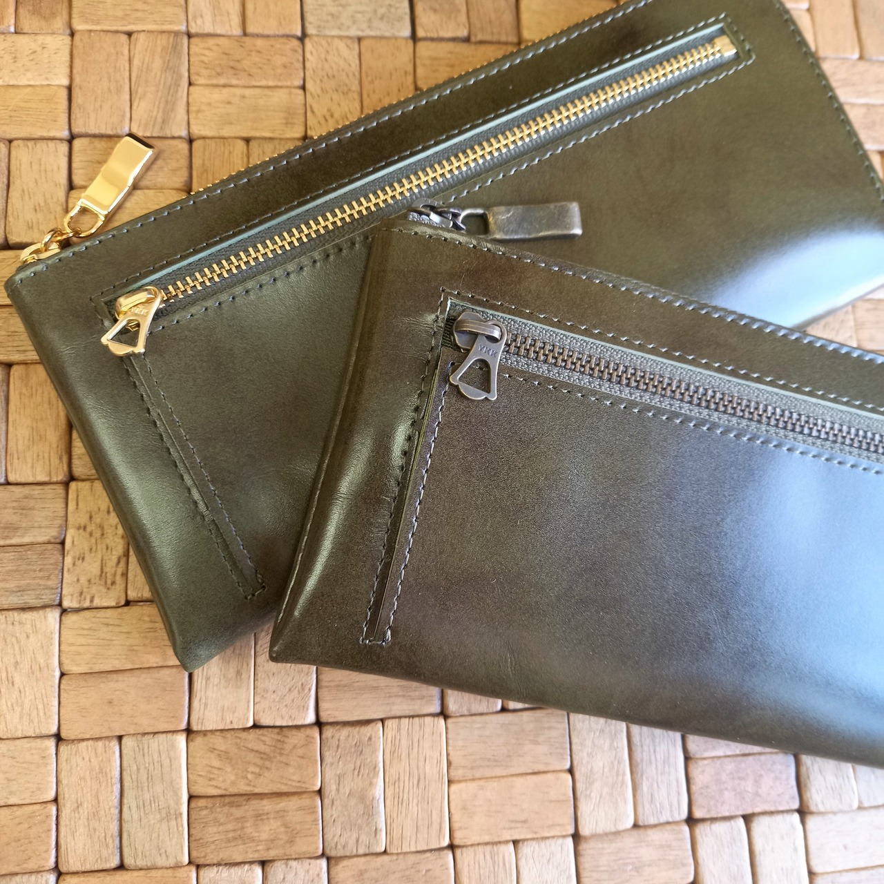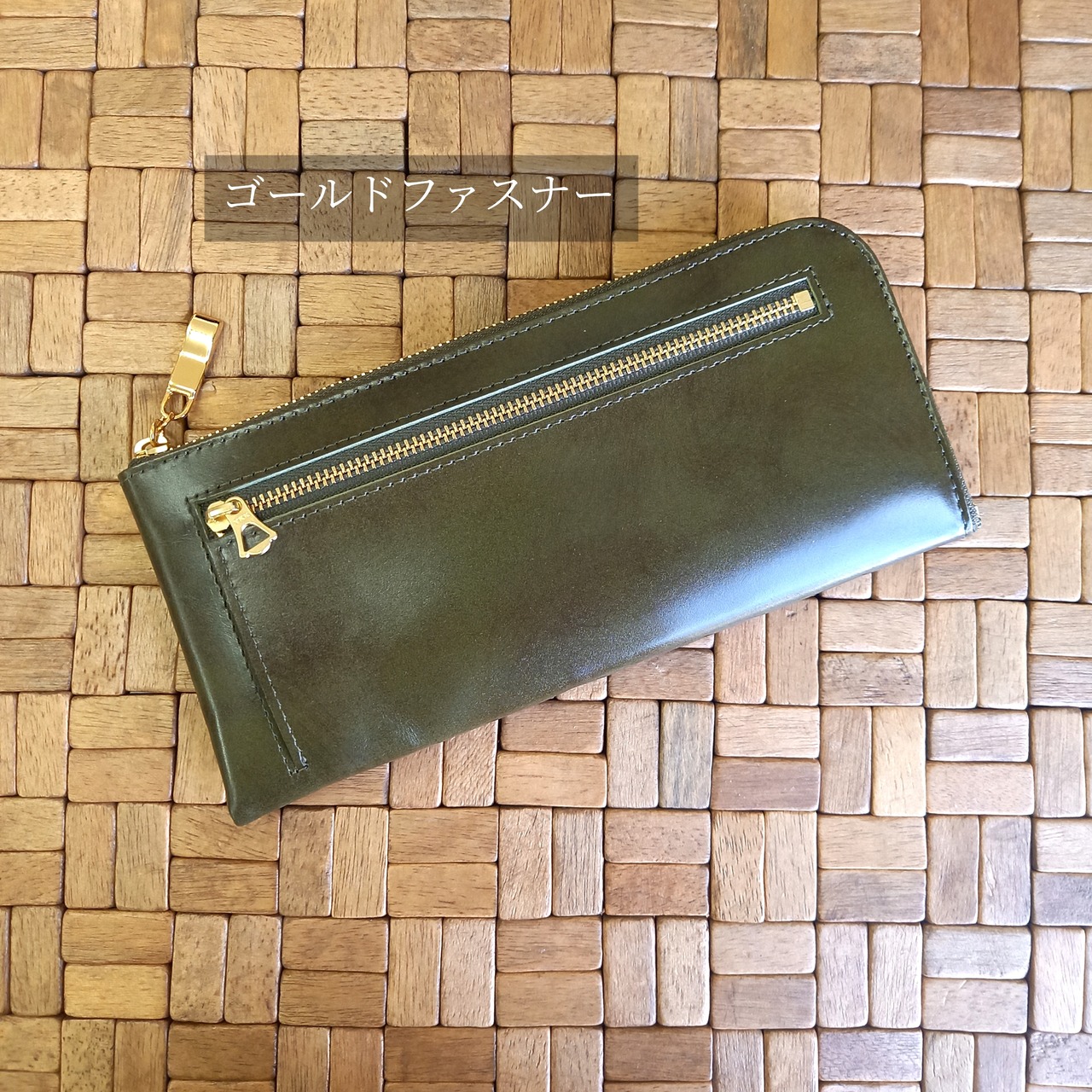 【SALE】送料無料!薄くて軽いのに大容量な長財布(アッシュグリーン)14枚カード入れ◇手染め牛革◇ファスナー選べる