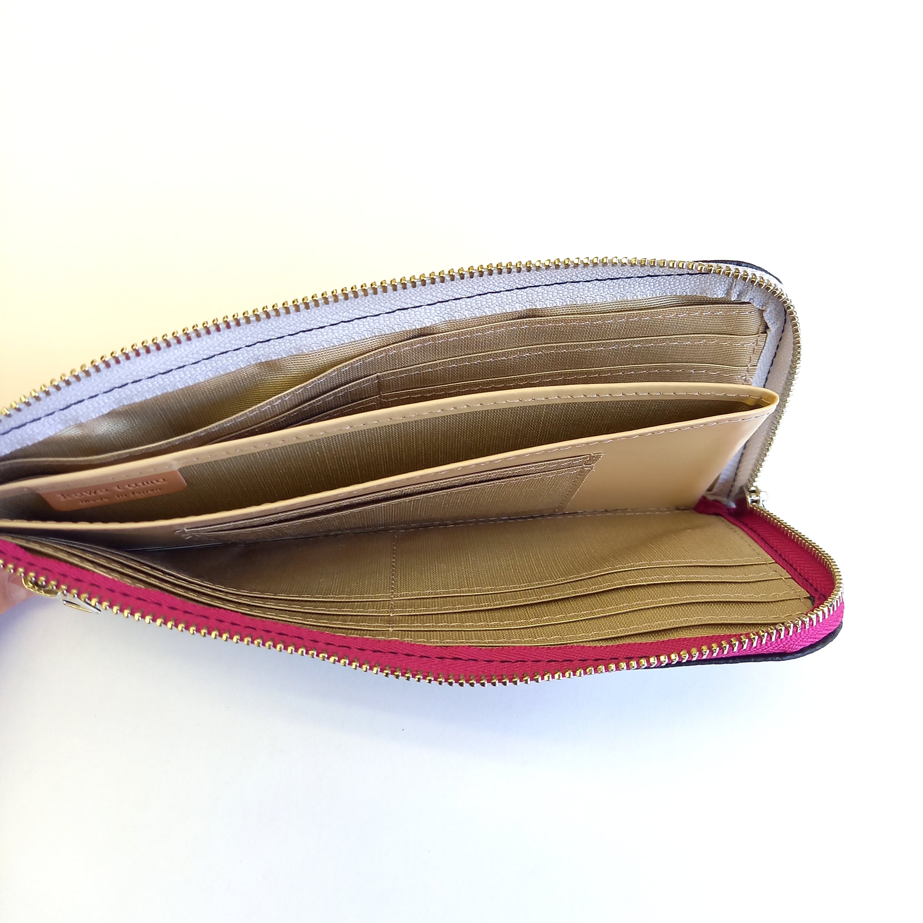 ファスナーのカラーは、マゼンダ×ホワイトグレーのコンビになります。