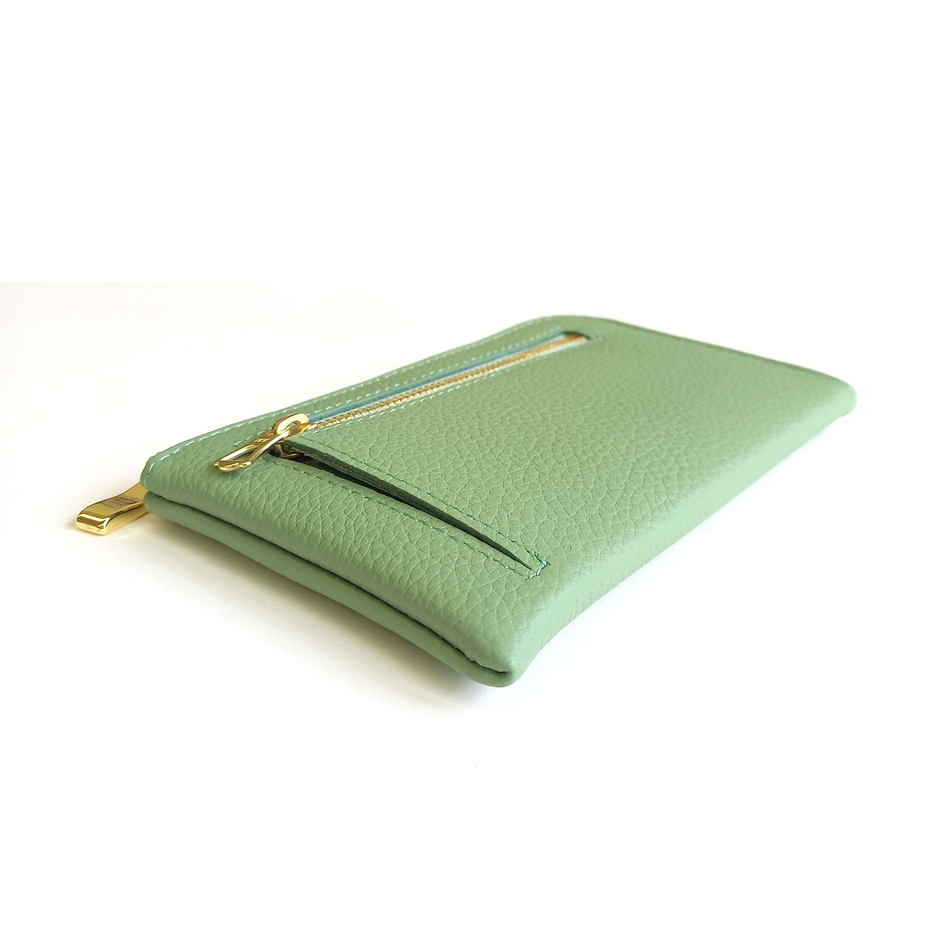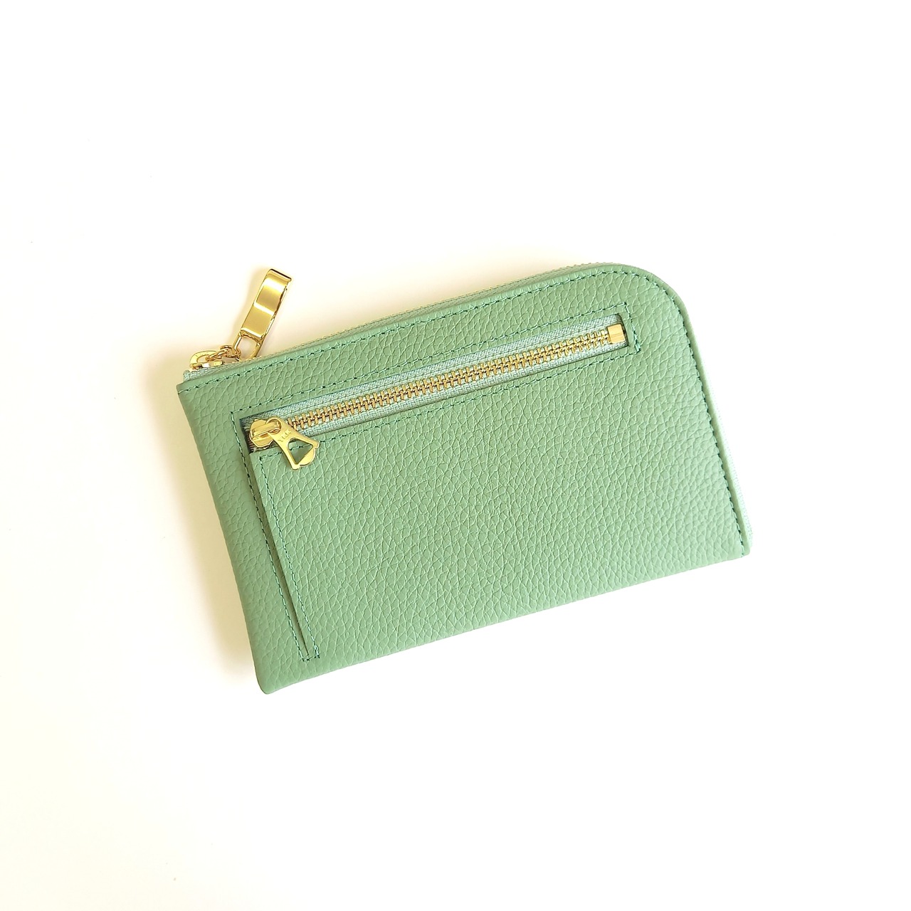 【送料無料】軽くて薄い!ミニ財布(ペールグリーン) カード入れは10か所!国産牛革シュリンク型押し