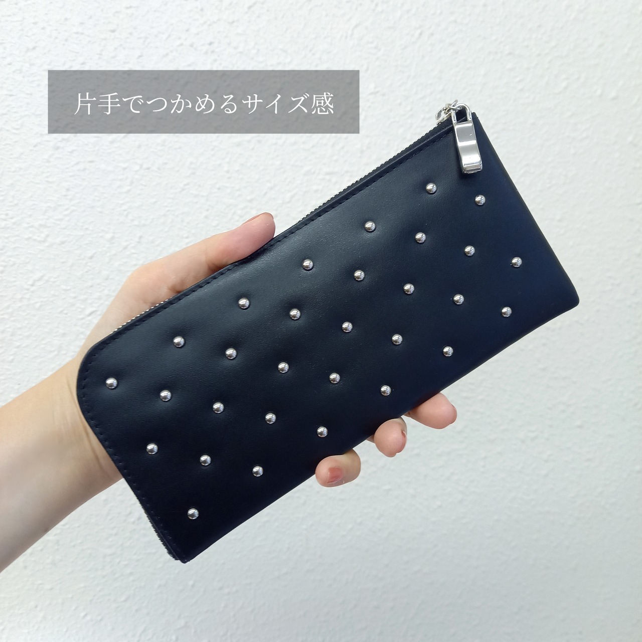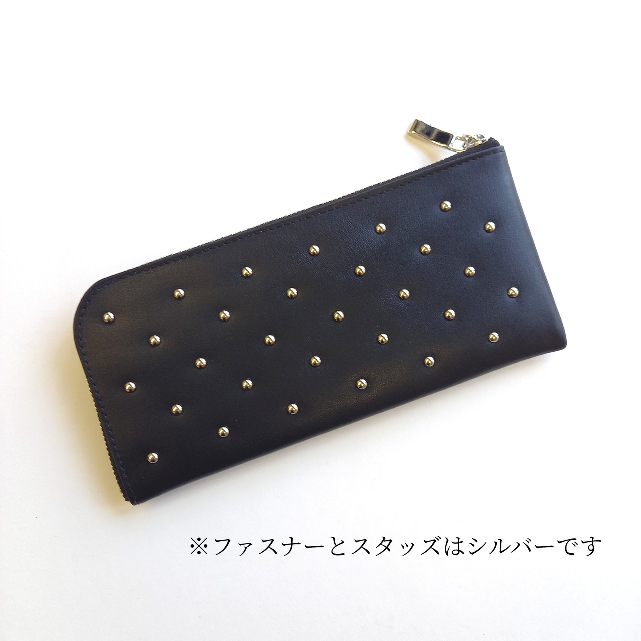 シンプルな型押しのないスムースレザーに、ドットのようにスタッズをプラスしモードで可愛い印象に仕上げました。