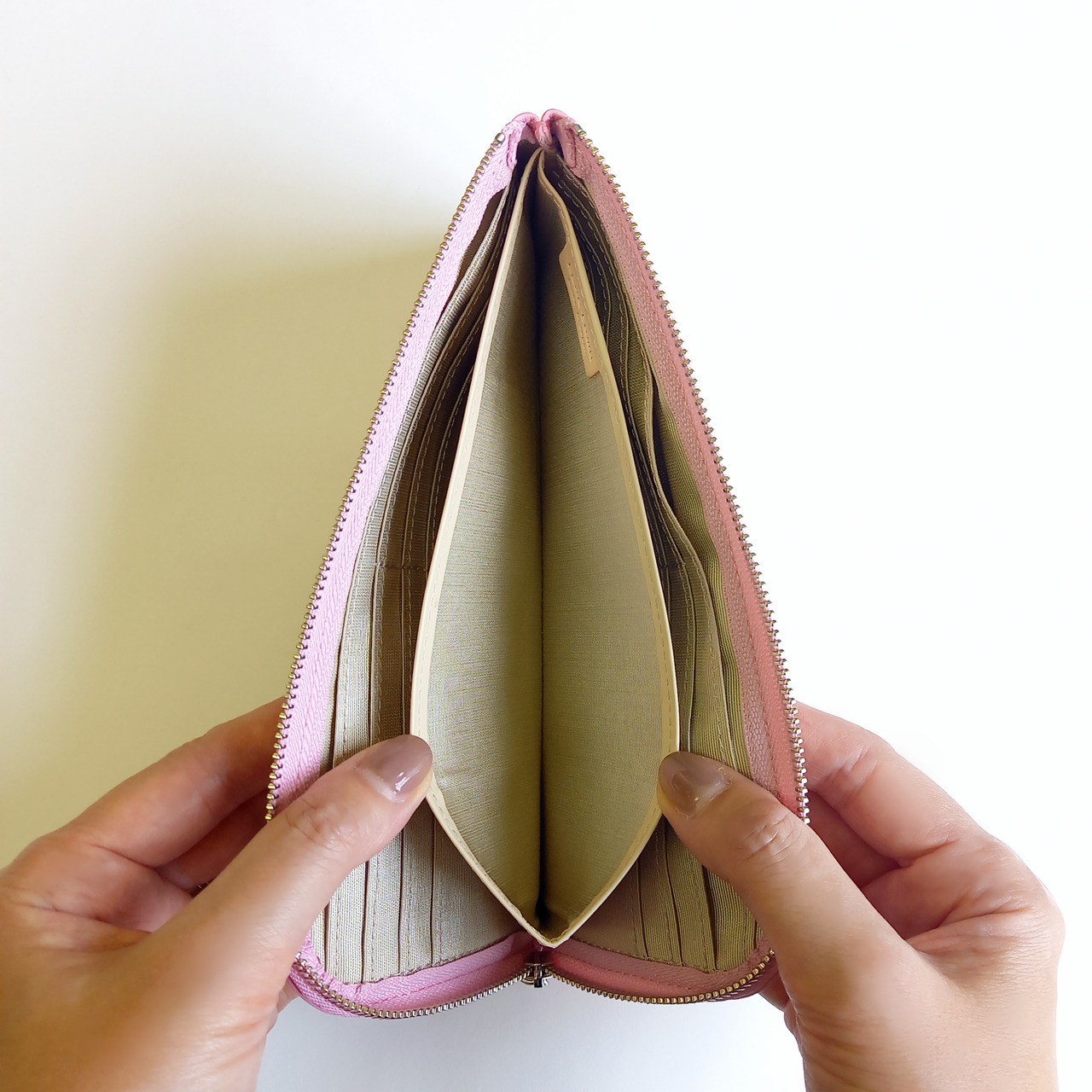 メインファスナーを開けてすぐにお札も小銭も同時に見えるので、お会計のときにスムーズです。