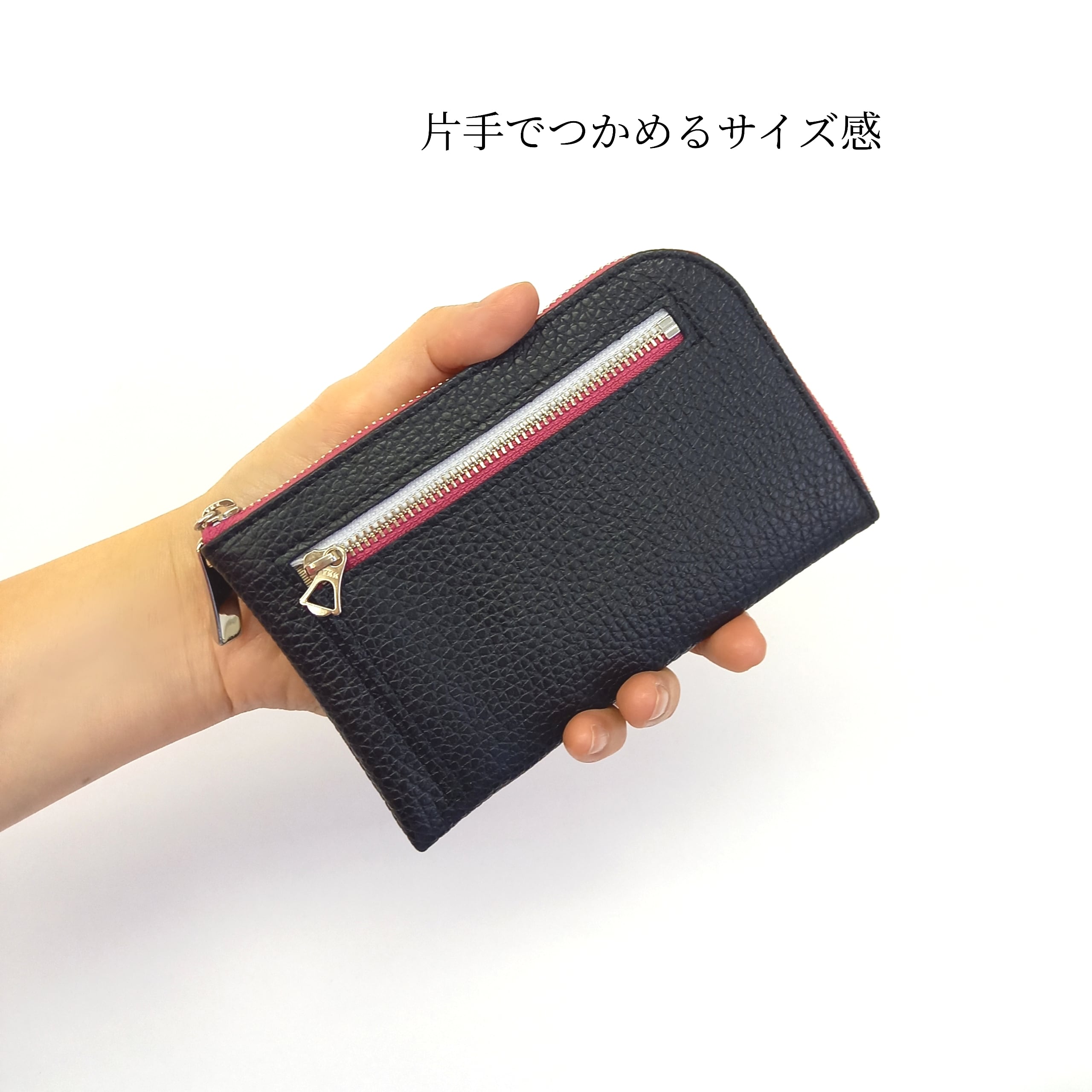薄マチで軽くコンパクトなサイズの、L字ファスナーミニ財布です。
