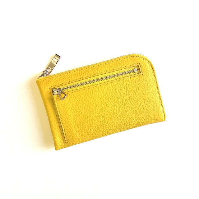 スリムで軽いミニ財布(イエロー) 10枚カードポケット◇高級イタリアンレザー◇ファスナー選べる【かわつむ】L字ファスナー財布